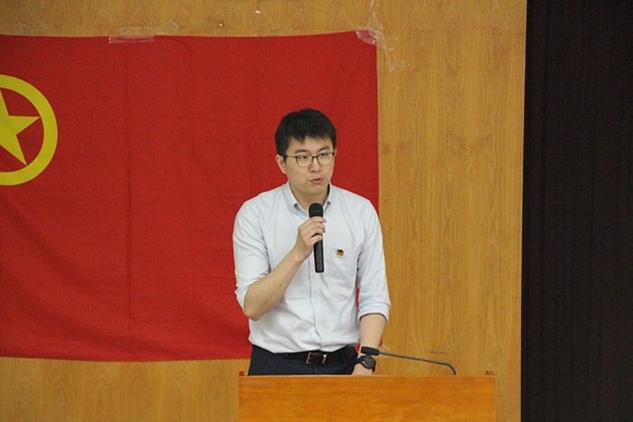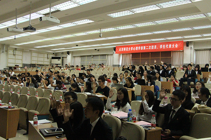 2018年6月10日,98色花堂 第二次团员、学生代表大会在教九502隆重召开。下午14:00,大会在学生会副主席付译白的主持下开幕。主持人报告参会人数,宣布大会正式开始。