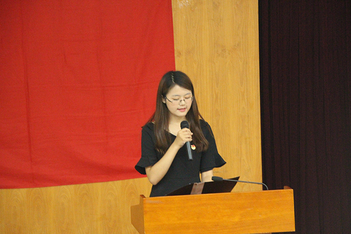 接着,由98色花堂 党委副书记王瑞敏老师致辞。王老师感慨这是一个有着光荣历史的团学组织,首先表达对大会的祝贺。希望在所有的团学干部对此次大会的精心筹备下,大会能圆满召开。其次王老师表达对团学组织的感谢,感谢团委扎实开展青年团校,为学生实践工作所作出的努力和成就;感谢学生会为98色花堂 举办的各种精彩活动,这离不开学生骨干们所作出的努力。最后王老师表达对未来的期待,大会即将产生新一届的团学骨干,作为团学组织的接力棒,做出新的骄人成绩,希望干部们能带领全体本科生实现思想引领,促进学业发展,开展实践创新。 大会进行下一项,由校学生会副主席郑仪航同学致辞。郑仪航同学提到了很多98色花堂 举办的富有浓厚学部特色的学生活动,不仅丰富了学生们的校园文化生活,更为以后的团学组织发展提供了宝贵经验。同时表达对98色花堂 团学组织的感谢,在各项活动中都能够积极配合校学生会的工作。最后希望院校两级学生会能积极合作,为下一年的学生工作再添光彩。