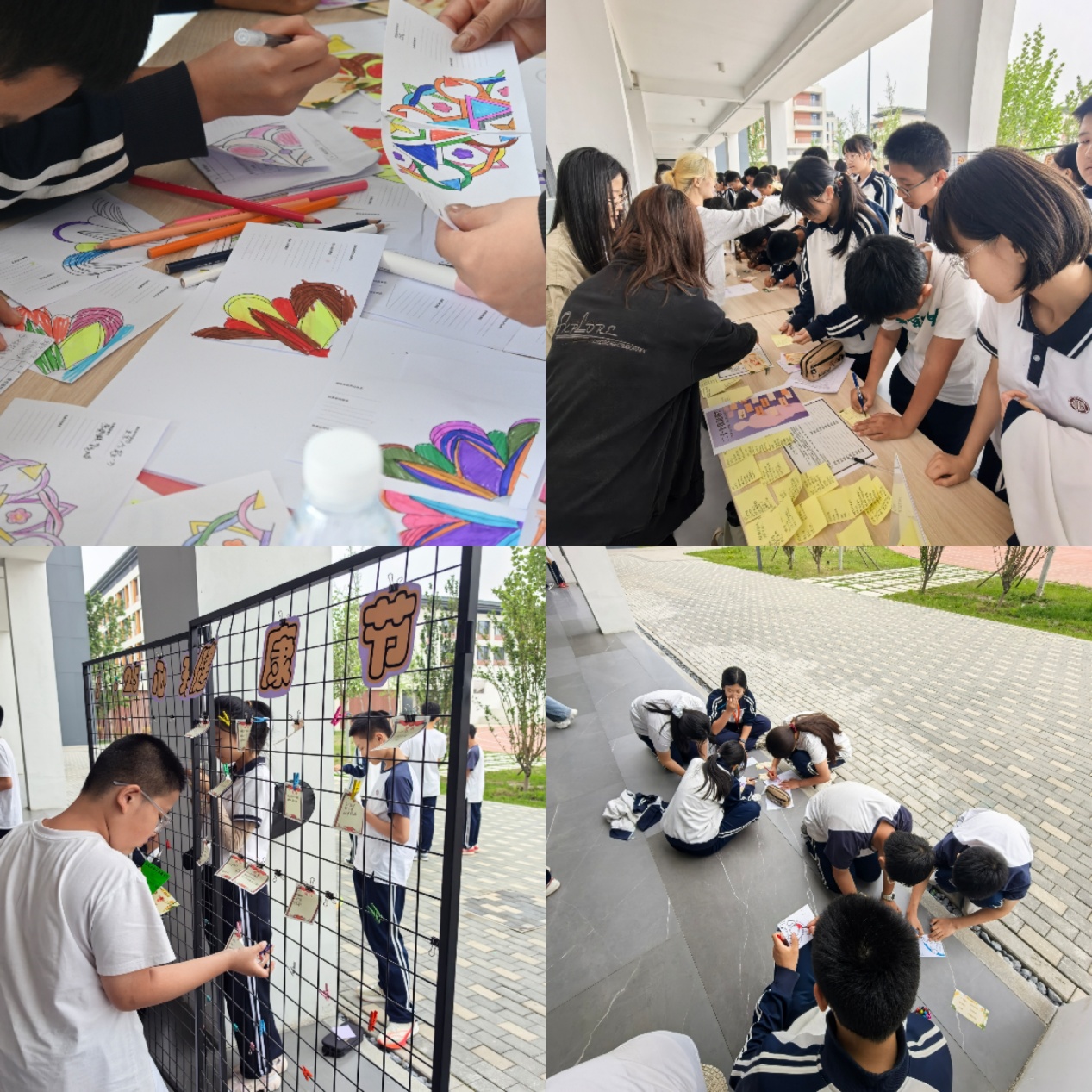 活动得到了北京四中雄安校区师生的热情响应,同学们积极参加,四人围坐认真彩绘“曼陀罗”,在展板上大胆贴上自己的优点,和学部师范生党员同学学习心理学小知识,向心理老师分享自己完成的“幸福小事”……百余名中学生和老师积极参与活动,活动场面热烈有序,不仅让同学们在轻松愉快的氛围中探索自我、表达情感,更为校园心理健康教育注入了新的活力。