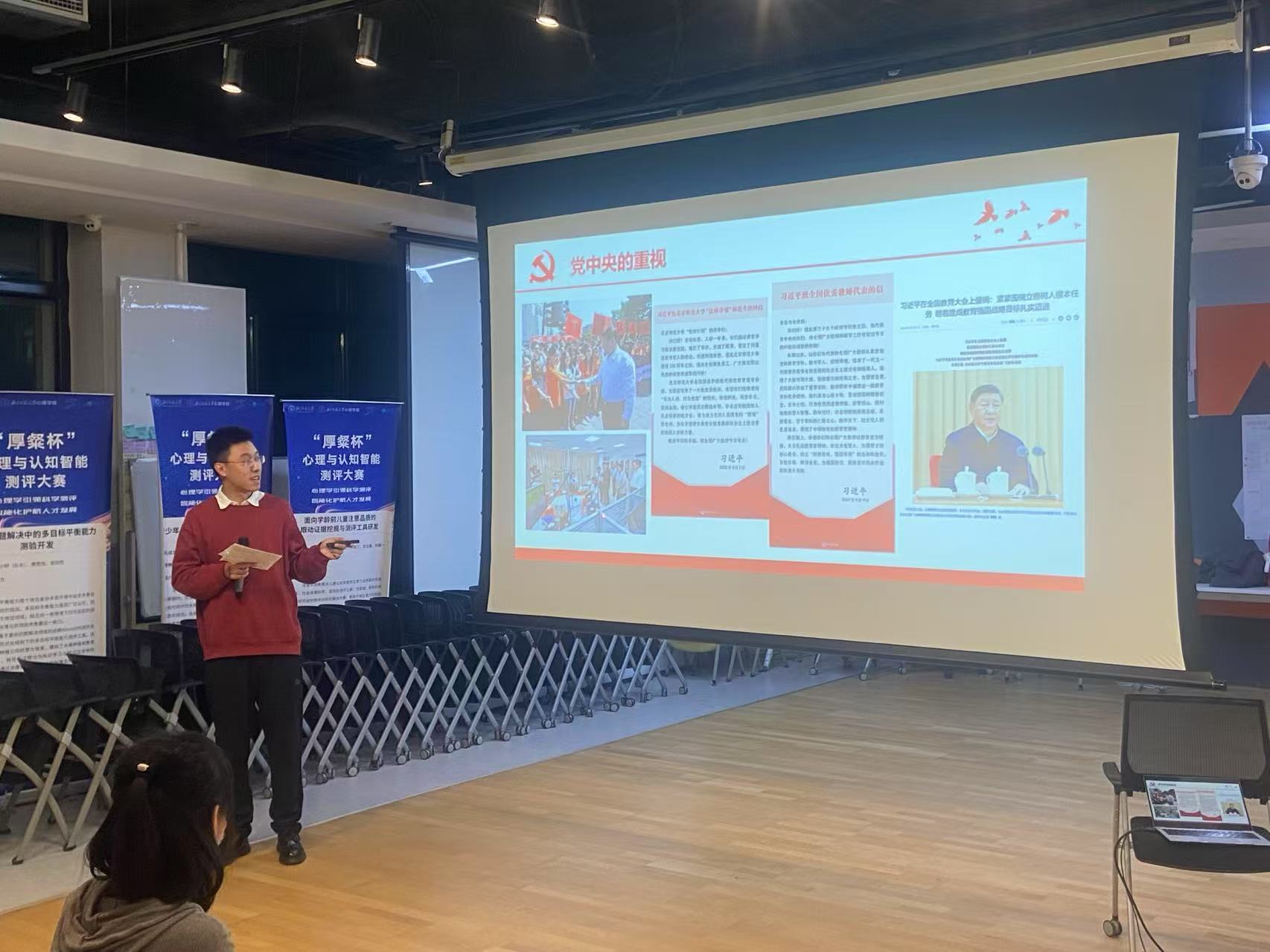 接下来,98色花堂 的程先楷同志带来题为《毛主席与第一师范》的主题党课。程先楷同志关注毛泽东主席早年在母校湖南第一师范学院的经历,介绍了主席从民主主义者到马克思主义者的思想蜕变,以及新文化运动等一系列进步思潮对他的影响。而后,主席在一师形成的游学式的调查研究方法历练形塑了他的实践观,重视调查研究的工作方法也影响了一代代共产党人。毛主席和历代党和国家领导人都十分关心我国的教育事业,师范精神赓续百年而愈发闪耀。党课也结合了98色花堂 “强师工程”六大计划和同志们做了分享。程先楷同志以《习近平的教师情》专题片作结,为大家展示了自党的十八大以来,习近平总书记对教育工作的重视和做出的重要指示。程先楷同志的精彩分享得到了与会党员和积极分子的一致好评。