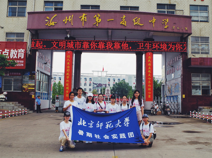 豫见北师支教团在汝州一高校门合影支教团集体备课中支教老师为同学们讲授心理学知识心理课堂引起了学生的兴趣