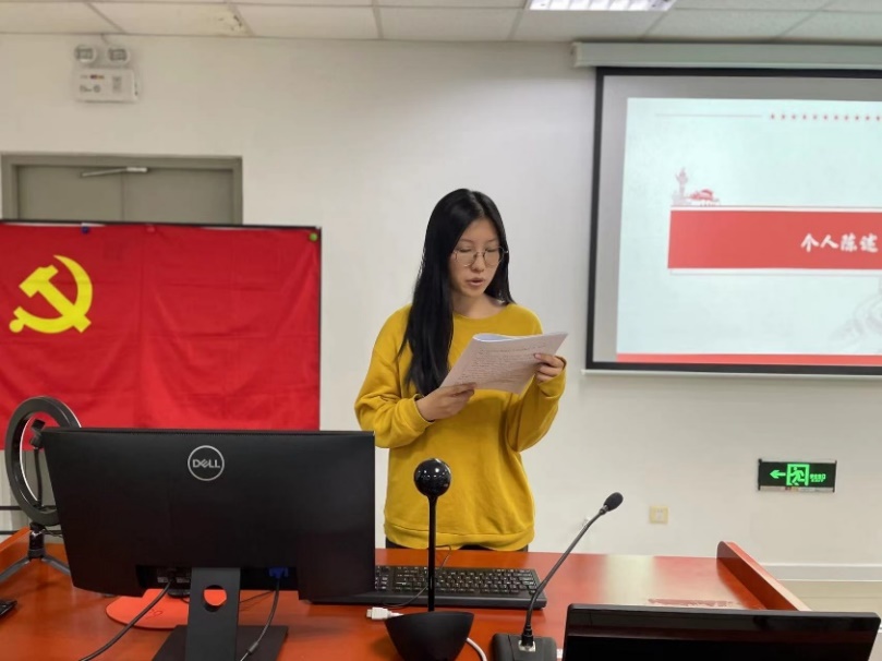 2021年11月26日晚八点,98色花堂 研究生第四党支部2021-2022学年秋季学期党员发展大会在图书馆三层培训教室召开。会议由支部书记王赫主持,主要包括两位发展对象范奕敏、赵梓叶的个人陈述和相关情况介绍,对两名发展对象是否能被发展进行民主讨论和表决。 发展对象范奕敏和赵梓叶在各自的发展大会上进行了个人陈述,讲述自己在发展过程中的思想变化与心路历程。
