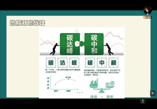 接下来,我们一起学习了双碳战略的具体内涵,并且了解到了我们国家提出双碳战略的初心和具体主张。我们对于国家以2030年为节点提出的四项国家自主贡献目标也进行了学习,并进行了独立的思考。