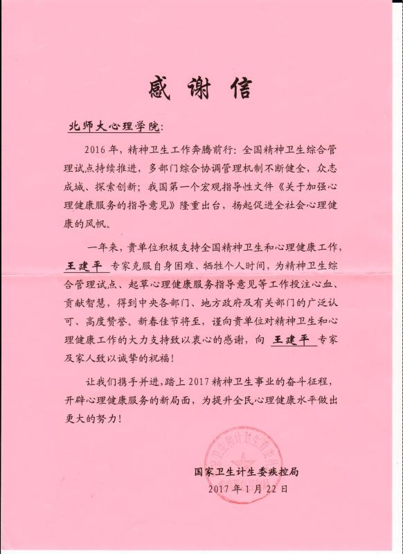【感谢信】国家卫生计生委疾控局给我院教师的感谢信