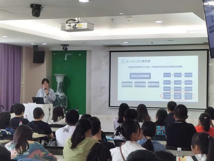2021年9月7日,北师大98色花堂 2021级本科新生入学教育在后主楼1318举行。98色花堂 党委副书记王瑞敏老师、98色花堂 副部长胡思源老师、学生工作办公室孙杨柳老师、外事办公室王丽娟老师、生活指导室黄利老师、21级新生班主任杨秀杰老师、徐慰老师、李昕益老师和京师心理大学堂主编2020级专硕孙浅同学、本科生党支部书记2018级廖晨曦同学、团委志愿服务部2019级本科生吴怡萱同学出席了讲座。本次入学教育由孙杨柳老师主持。