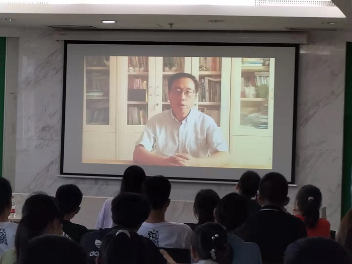 图1 孙杨柳老师在主持 会上,罗跃嘉部长、著名心理学家林崇德先生、教师代表黎坚老师、党委书记乔志宏老师送来线上的祝福与寄语。他们对21级新生表达了热烈的欢迎与衷心的祝贺,并提出了鼓励与期许。罗部长在致辞中对学部进行了介绍,并对同学们提出了期待与要求;林先生通过六个“爱”:爱北师大、爱心理学、爱集体、爱同学、爱自己、爱生命,呼吁同学们为心理学的繁荣一起努力;黎坚老师通过风趣幽默的语言展现了心理学在生活中的应用,希望同学们锻炼思维、不断挑战自己;乔志宏书记对同学们提出了三点期望:始终保持积极乐观的情绪、勇于实践知行合一、友善乐群的心态。