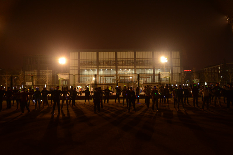 3月27日晚8点,心理学院全民运动健身月开幕式之“the light run”在东操场举行。 活动开始前同学们已来到东操场签到,随后领取了荧光手环、眼镜等装饰物,积极地做准备。8点活动正式开始,首先,三位来自体育与运动学院的同学带领同学们做了热身活动,接着心理学院的张照鹏同学组织大家慢跑。跑完2公里后,同学们在体育与运动学院同学的带领下做了拉伸运动。之后同学们合影留念,进行后续活动,包括三个团队游戏——跳大绳、划龙舟、歌词接龙。同学们互相配合,气氛非常热烈。最后,心理学院体育部的同学们和主席团成员合影留念。
