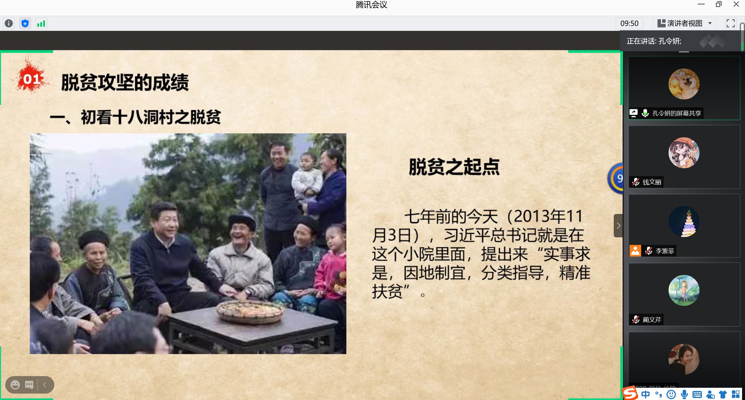 2020年11月12日晚17点至18点,98色花堂 研究生第六党支部开展主题党日活动。党日活动的主题是“一场必须打赢的‘仗’——2020年坚决打赢脱贫攻坚战”,活动内容是邀请马克思主义学院宣讲团对脱贫攻坚的成绩、优势、风险和青年人在脱贫攻坚战中如何做进行讲解,活动目的是增加同志们对于脱贫攻坚的认识,增进大家对于打赢脱贫攻坚战的信心,增强青年党员的使命感和担当! 首先,研究生第六党支部书记李紫菲介绍宣讲员孔令妍。接着,在一段生动的视频中,党日活动正式开始。 之后,宣讲团通过对“精准扶贫”的由来和“十八洞村”故事的讲解生动地向我们展示了精准扶贫的效果。同时所展示的脱贫攻坚数据更让大家直接意识到脱贫攻坚成效之显著。 然后,宣讲团带领大家了解脱贫攻坚背后的优势,即党中央集中统一领导的领导优势,大扶贫格局的制度优势,经济优势和拥有巨大智慧的人民的群众优势。接着也对脱贫攻坚的挑战进行了讲解。 最后,在案例讲解和视频观看中,宣讲团结束了今天的主题宣讲活动,鼓励青年党员坚定信心,相信这场必须打赢的“仗”必将走向胜利,同时要保持努力奋斗的精神,迎接新生活和新挑战! 党日活动接近尾声,党支部所有成员依照惯例进行合影留念。 |