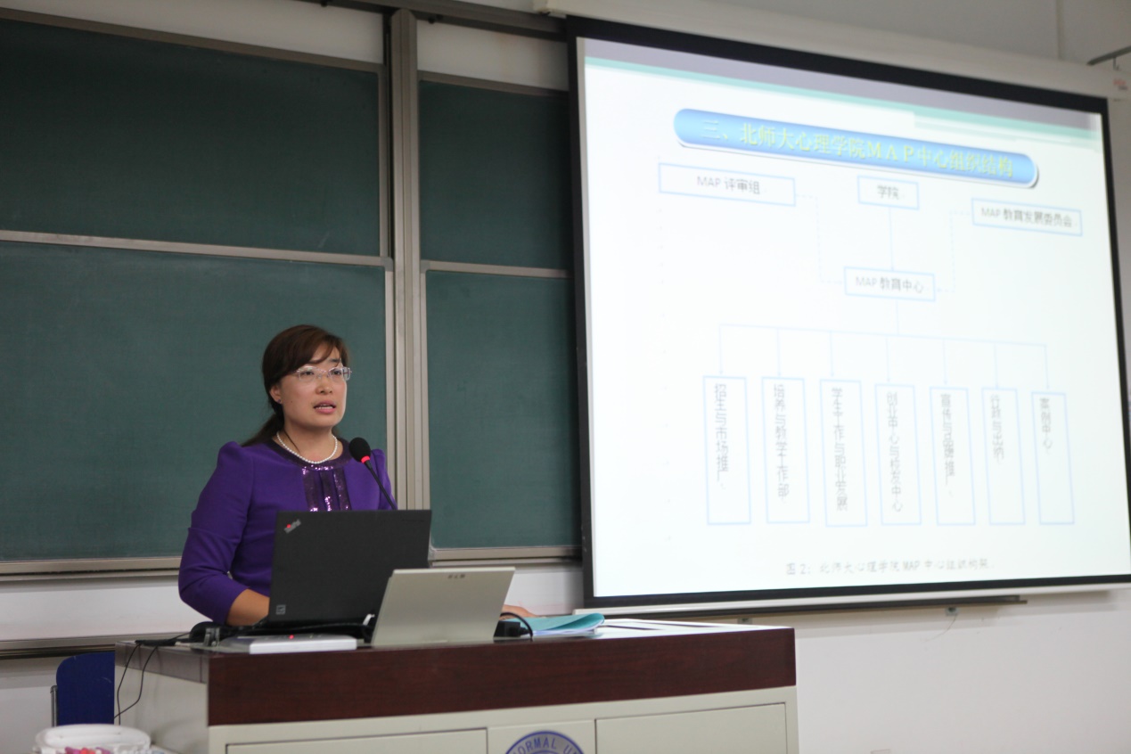 2015年9月6 日晚上6点,全体MAP15级新生在教八101开展新生入学教育。会议由MAP教育中心孙舒平老师主持,到会演讲的嘉宾有心理学院党委书记乔志宏、心理学院副院长与MAP教育负责人张西超教授以及MAP各个班的班主任。在活动一开始,孙舒平老师就自豪而欣慰地告诉新生,北师大心理学院是全国排名第一的心理学院,在场师生都感到特别振奋人心。