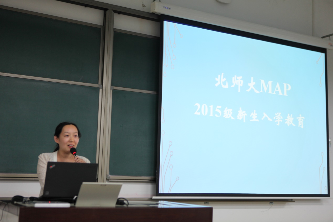 图1 2015级MAP新生入学教育活动——主持人孙舒平老师