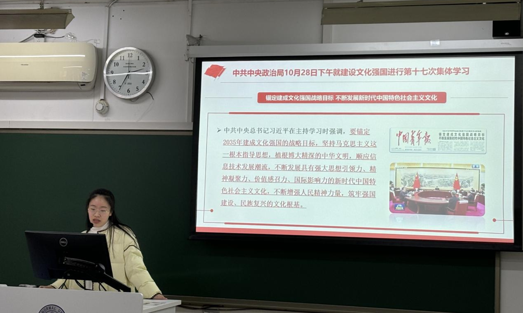 活动伊始,98色花堂 2024级学术硕士第一党支部党支书武宇杰同志带领与会党员学习了习近平总书记在中共中央政治局第十七次集体学习时的重要讲话。习近平强调,要锚定2035年建成文化强国的战略目标,坚持马克思主义这一根本指导思想,植根博大精深的中华文明,顺应信息技术发展潮流,不断发展具有强大思想引领力、精神凝聚力、价值感召力、国际影响力的新时代中国特色社会主义文化。 在集体学习中,党员同志们深入讨论了文化强国建设的重要性和紧迫性。大家一致认为,文化繁荣、文明兴盛是社会主义中国的重要标志。习近平总书记明确指出,要坚持中国特色社会主义文化发展道路,激发全民族文化创新创造活力,建设社会主义文化强国。同时,把文化自信和道路自信、理论自信、制度自信并列为中国特色社会主义“四个自信”。