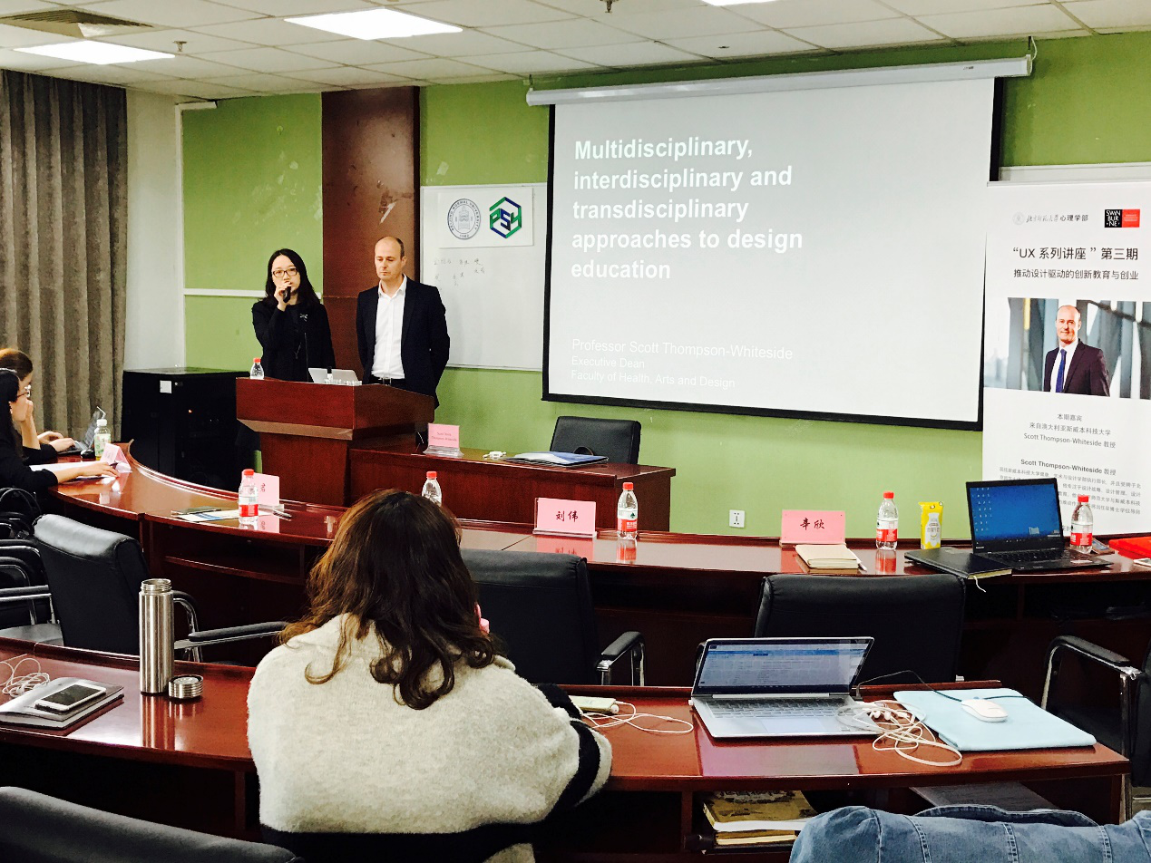 图3 澳洲斯威本大学健康、艺术与设计学部执行部长Scott Thompson-Whiteside教授位北师大98色花堂 学生做主题讲座
