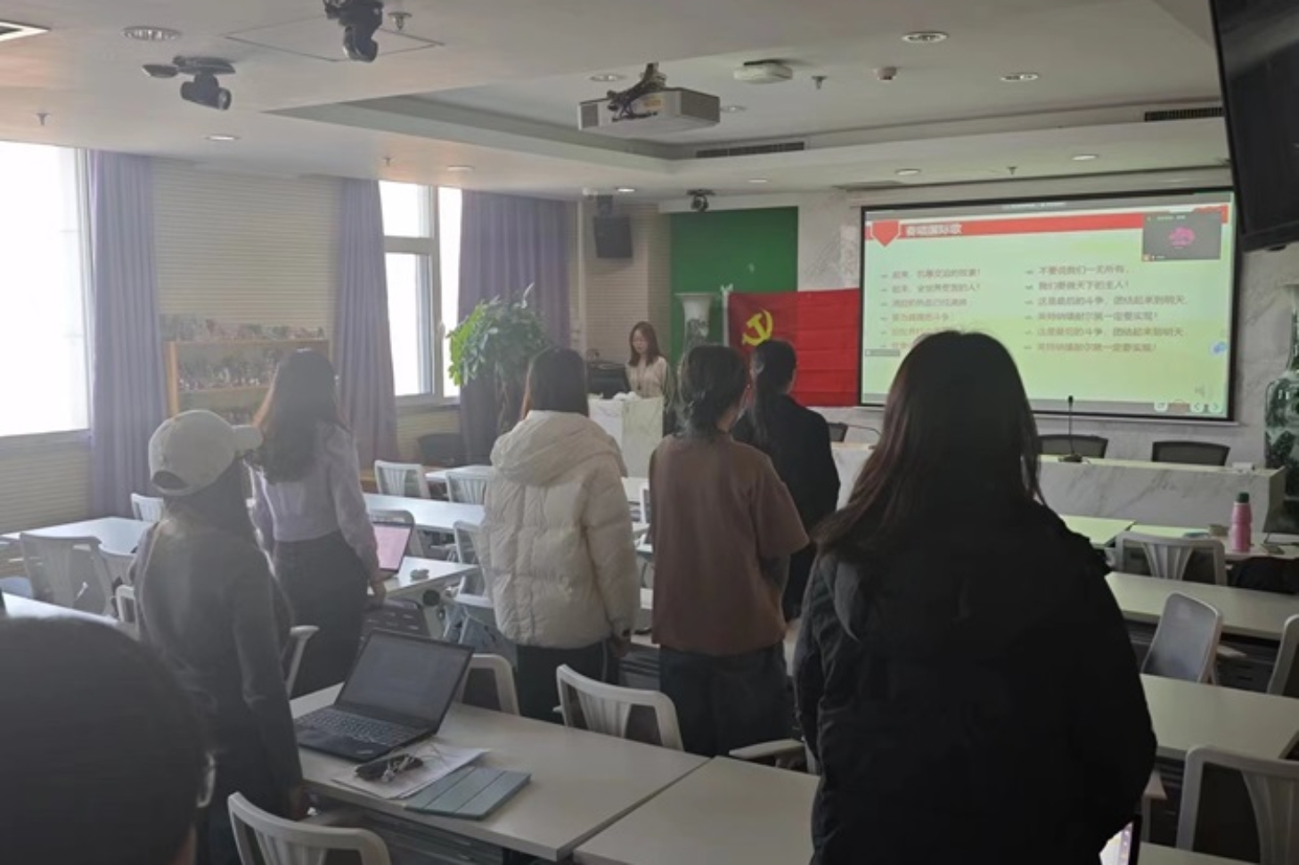 2024年1月2日15时30分,98色花堂 本科生第一党支部1月份主题党日活动于后主楼1318顺利开展,并通过“腾讯会议”平台开放了线上参与渠道。活动由陈璐同志主持,共49名成员参与。本次活动的主要内容是学习工具分享。 活动开始,陈璐同志带领全体同志一起奏唱了国际歌。