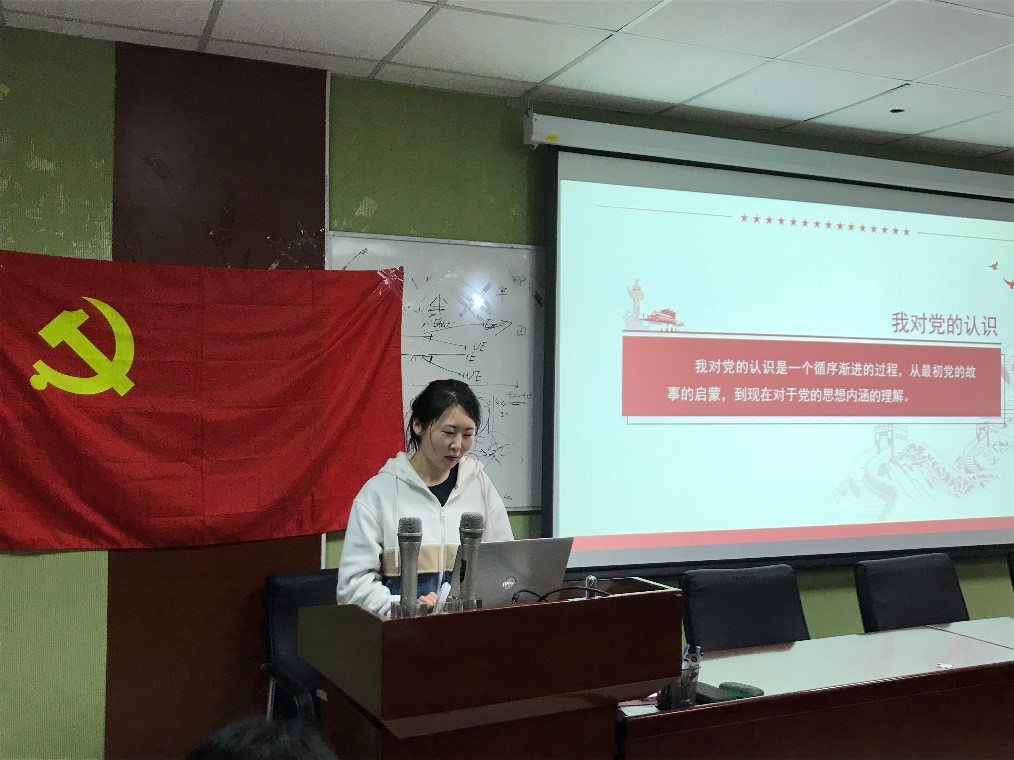2021年3月27日晚六点,心理学院19级学硕第四党支部的支部成员们准时到达会议室,准备召开本学期第一次党支部会议。 本学期第一次党支部大会正式开始 正式会议开始前,全体党员起立,合唱国际歌。 会议开始后,支部书记对假期的实践活动成果作了简短的小结,并重点布置了本学期即将开展的庆祝中国共产党成立100周年活动的相关内容,以及推进党员发展的工作计划。 支部书记介绍本学期党支部工作安排 随后,会议开展了支部积极分子转预备党员的预答辩环节。从五名积极分子真挚而充满热情的分享中,能感受到他们入党的坚定决心。在场的其他党支部成员也针对各位积极分子的表现,指出了仍存在的问题并提出了中肯的建议,现场交流氛围热烈。