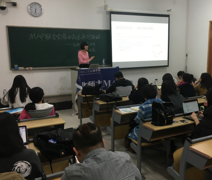 11月13日,心理学院MAP联合会在生四134举办了学业成长系列活动之文献阅读讲座。本次的主讲人是曾发表过多篇SCI的心理学院2014级学术型硕士张萌,她演讲的主题是学术向赛客必备技能。 张萌在指导文献阅读技巧 在活动中,张萌对于文献的搜索与获取进行了阐述,其中最关键的是对论文关键词与主题进行提取,可以先从已有的英文文献、中文文献中提取出来这些关键词,如果还没有确定自己的相关方向还可以从教科书和老师那里获取到要用的搜索关键词。同时推荐了在北师大图书馆网站中常用的文献库以方便同学们实际使用。 同学们认真听张萌的分享 随后,张萌根据实际情况着重传授了一些阅读英文文献的小技巧,希望同学们学会在文献阅读时先找到topic sentence,识别重要的点并从整体把握一篇文章的文献结构,从而提升自己的阅读速度。并且她以一篇具体的论文来举例让同学们更加直观的感受到了技巧的运用。 最后张萌也提供了一些英语学习的网站并表示,学习没有捷径唯有熟能生巧。随后同学们根据讲座的内容积极提出了自己困惑的问题,例如如何确定和发现核心文献等。伴着大家的掌声,本次文献阅读讲座圆满成功! 张萌介绍英语学习APP (心理学院MAP联合会) 袁云鹏供稿,袁云鹏供图 |