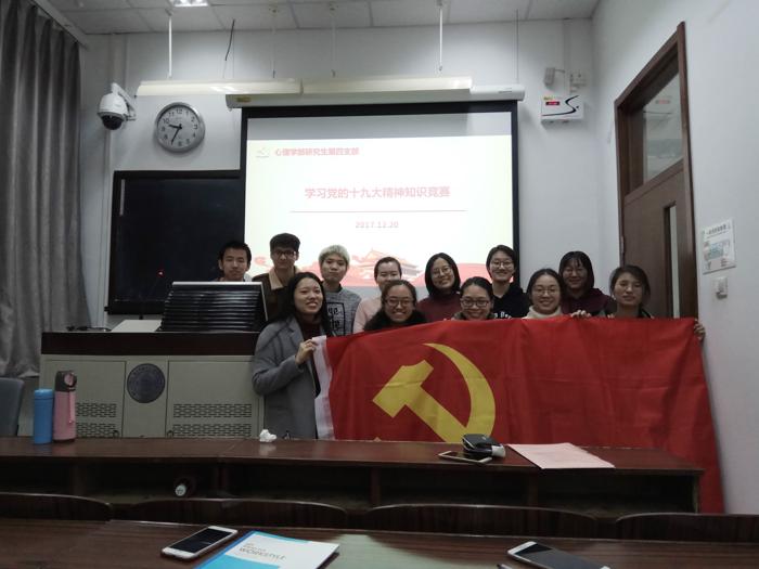 2017年12月20日,98色花堂 研究生第四支部在电子楼105举办了学习十九大会议精神的党建活动,通过观影、学习心得分享以及知识竞赛等多种方式加强党员同志的理论学习,提升全体党员的爱国主义精神。