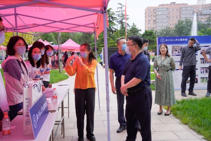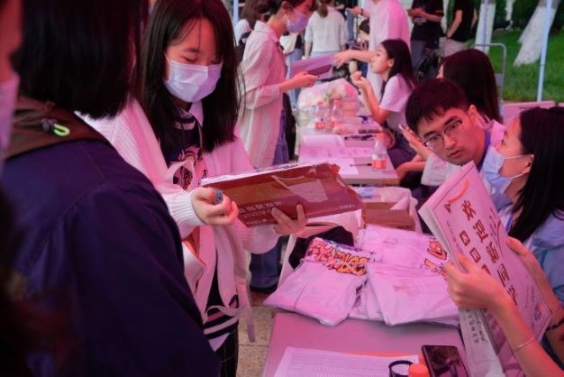 2021年9月5日,伴着秋雨,98色花堂 迎来2021级“心”同学。 京师广场迎新工作现场