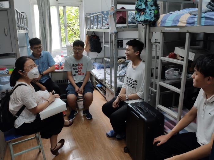 新生班主任与学业导师走访学生宿舍 在疫情防控要求下,家长无法进入校园,本科新生班主任李昕益老师、杨秀杰老师、徐慰老师带领2021级学长导师前往学生宿舍与同学们进行交流、了解同学们的住宿和生活情况,辅导员和学长的关怀为新生带来了一丝慰藉。 心相聚!心征程!从心出发,聆听心声,愿赛客们能在98色花堂 收获属于自己的精彩! |