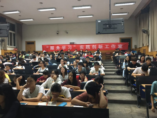2017年6月23日,受校团委社会实践部邀请,“服务学习”实践创新工作室在生地楼生一教室为全校暑期支教学生开展了一次题为《有爱有术的支教课堂》的培训课程。此次培训由98色花堂 史佳鑫老师主讲,来自全校150多名学生参加了此次培训。 史佳鑫老师围绕“怎样设计课程”、“怎样准备课程”、“怎样讲授课程”三个方面进行讲解,向学生详细讲述了如何确定课程目标,怎样采取有效的教学方法、如何备好一堂课等一系列内容。这一课程是“服务学习”实践创新工作室开发设计的标准化课程,将“服务学习”理论中“服务中有学习,学习中有服务”的理念贯穿其中。课上,史老师分享了“课程设计清单”这一工具,通过问题的形式引导学生合理有效地设计课程环节,更加优化服务效果;史老师在准备课程环节,以“备自己”“备学生”“备知识”为提纲,督促同学们在服务前进行有目的的学习。培训中,史老师将知识与具体的教学实践有机结合,教学语言生动有趣,培训内容丰富实用,课堂氛围轻松活泼,受到了学生的关注和好评。 “服务学习”实践创新工作室在去年一年的基础上,开发了《暑期实践项目开发手册》、《课程设计清单》等实践前的准备工具,并将这一成果分享给师大学子,具体介绍可详见//98shtvip.org/tabid/203/Default.aspx。未来半个月,工作室还将继续推出服务支教和调研项目的实践培训课程。