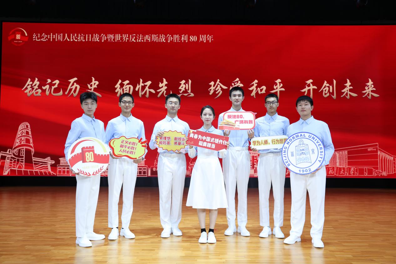 参与合唱及志愿保障学生代表感悟 广场合唱团成员、2024级本科综合班 陈嘉祺: 能够作为广场合唱团的一员参加本次纪念大会,我感到很荣幸,也深感肩上的责任重大。从最开始签下保密承诺书,到最后圆满完成任务,我们一共用了117天,在这期间,我们每周不间断的进行合唱专业训练以及体能训练,我们也慢慢的从起初的陌生逐渐变得熟悉,团体凝聚力越来越强。我们不仅收获了专业的合唱技巧,我们的思想也进步了,我们的体魄也变得更加强健,对于为何要铭记历史也有了更深刻的体会。记得五月份在动员大会上,老师带领着在场的党员一起重温入党誓言,他们坚毅的目光,庄严的神情感染了我们在场的每一个人;记得八月份我们一起回看了纪念中国人民抗日战争暨世界反法西斯战争胜利70周年大会的直播,大家都心潮澎湃,有一位同学起来分享感悟,他为祖国的强大而感到自豪,被军人们的坚强意志而震撼,他所说的也是我们在场所有北师大学子的心声......这样令人感动的瞬间还有很多,支撑着我们坚持下来的有报效家国的爱国热情也有对革命先烈的缅怀和对于人民英雄们的致敬! 我们唱的每一首歌曲背后的故事都感人肺腑,它们的歌词都是饱含着对革命先烈的缅怀之情的。每一次演唱《松花江上》这一首曲目,都会让我热泪盈眶,“我的家/在东北松花江上/那里有我的同胞/还有那衰老的爹娘”每每演唱到此处,我的脑海里就浮现出一片辽阔的东北黑土地,还有抗战时期流离失所的东北同胞的面容。80年前四万万中国人民不屈抗争,最终打倒了日本侵略者,捍卫了国土安全,取得伟大胜利!数十年间,一代代爱国青年接续奋斗,为国家发展贡献自己的力量,中国一跃成为世界第二大经济体。我们生逢其时,生长在这个和平安宁、充满机遇的时代,更应该清楚青年肩上的时代使命,努力提升自我,在祖国需要的时候挺身而出。时代各有不同,青春一脉相承。临近出发前,我们在学生活动中心集合,一起高声朗读我们的誓言,铿锵有力的青年之声在回响——“铭记历史,缅怀先烈,珍爱和平,开创未来!” 在现场我们站在天安门城楼的正前方,身旁是仪仗队的军人们,心情无比激动,同时也深感当代青年的责任重大。我们近距离地观礼,军人们挺拔的身姿令我们惊叹不已,看到的装备方阵也是让我们大开眼界,大国重器是我们保卫和平的底气。最后放飞和平鸽的时候,我看着满天的白鸽自由飞翔,看着天空上逐渐升起的彩色气球,十分激动,既是为我们能够圆满完成这次光荣任务而高兴,也是为祖国的繁荣昌盛和蒸蒸日上而感到自豪! 广场合唱团成员、2024级师范班 王思翔: 强国复兴,有我担当!作为98色花堂 的一份子,很荣幸代表全国的青年大学生们参加中国人民抗日战争暨世界反法西斯战争80周年纪念大会,站在祖国的心房歌唱祖国,见证九三大阅兵!在《请你检阅》的号声中,我心潮澎湃,深刻领会了“一次受阅,终身光荣。一人受阅,全家光荣”这句口号的份量与荣光。在《松花江上》的呼唤中,我感慨万千,深刻体悟到“九一八”这用鲜血染红的数字背后,无数英雄先烈和逝去同胞们对祖国繁荣昌盛的殷切期盼。这次难忘的经历让我意识到,作为一名参加广场合唱团的青年大学生,我是中国青年的一份子,更是一名98色花堂 的一份子,是全国青年的一份子。我歌唱的每一首歌曲,做出的每一个表演动作,都是在代表中国青年的精神风貌,都是在奔赴国富民强,民族复兴的伟大理想。奋斗正青春,青春正当时!九三大阅兵,是铭记历史、缅怀先烈、珍爱和平、开创未来的最佳诠释,是国家从站起来,到富起来、强起来的最佳展现,是全国思想政治教育的生动一课。这一百余天,在夜以继日的训练中,在风雨兼程的演练中,我经历了专业的指导,收获了珍贵的友谊,铭记了难忘的时刻,最终站在天安门前。当保卫黄河的咆哮响起,当歌唱祖国的欢呼响起,当许久之后,回忆浮起,我会记得,青年们会记得,全国人民会记得,全世界爱好和平的同志们会记得,那些在抗日战争中,在反法西斯战争中,为了逝去的亲朋和同胞,为了国家繁荣昌盛的英雄先烈们。向所有在本次纪念大会作出贡献的人们,向所有在历史长河中为祖国奋斗的人们,致以最崇高的敬意! 广场合唱团成员、2024级综合班 李博文: 十分有幸参与到本次广场合唱团专项任务中。117天,200余小时。是反反复复的发声练习让合唱的歌曲更加动听;是日日坚持的体能训练让大家在台上能够站如松,坐如钟。不止于此,打动我的可能更是大家团结一致的意志品质与积极向上的精神力量,更是歌唱歌曲中大家眼中饱含的情感与心中深深的共鸣。 终于站在天安门广场上,旗杆下,仿佛梦一般。回想九·一八,一曲松花江上险些落泪;看着先进的武器装备,一首请你检阅激荡起国家富强的自豪;到最后,和平鸽与彩色气球充满整个天空,在歌唱祖国的歌声里,我格外的欣喜与光荣。此时此刻我将深深铭记。青春的我们,在这里,一同以歌唱回望抗日战争的历史岁月,也歌唱我们亲爱的祖国,从今走向繁荣富强。 广场合唱团成员、2024级师范班 张策翔: 从5月8日加入A组,到9月3日活动任务圆满完成,在这117个日日夜夜里,饱含着太多情感与回忆。难忘当时被邀请参加活动时的激动与欣喜;难忘初遇小伙伴们时的开心;难忘签署保密协议时的紧张与严肃;难忘大家训练时的团结严肃与训练结束后