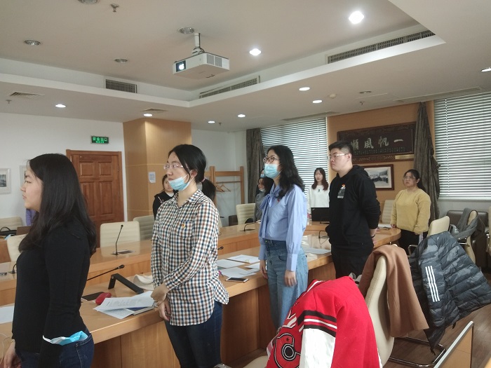 11月14日下午12:30,98色花堂 本科生党支部2020-2021学年秋季学期第一次党员发展大会在后主楼1316召开。会议由支部书记苏茹昕主持,分别针对发展对象李嘉雯,刘雨童,李可心,王闻博四位同志的入党申请及相关情况进行了讨论和表决。 图一 全体到场人员合唱《国际歌》 全体到场人员合唱《国际歌》后,主持人苏茹昕同志对本次大会的流程及发展对象顺序进行介绍,随后李嘉雯,刘雨童,李可心,王闻博分别宣读了入党志愿书,并由第一介绍人宣读介绍人意见,之后与会同志对发展对象的生活、学习、工作情况进行了民主评议,最后全体正式党员进行了不记名投票。 图二 全体合照 四名发展对象均被发展为预备党员,他们也发表了自己的感想,表示感谢大家的认可,以后会更加积极主动参与支部的活动,更加严格要求自己。最后,全体进行合照,秋季学期第一次党员发展大会顺利结束。