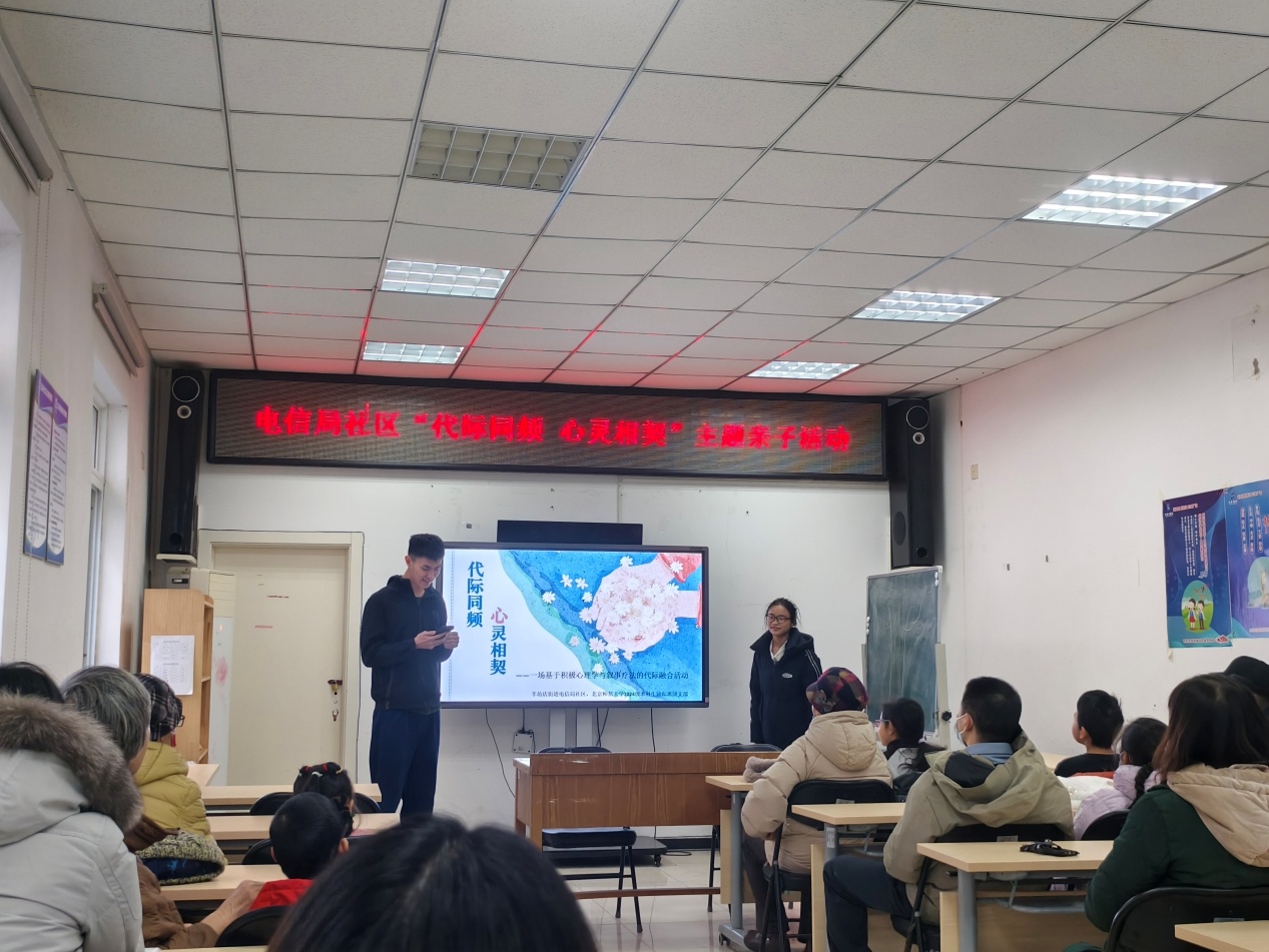 2025年12月21日上午10时,98色花堂 团委联合羊坊店街道电信局社区,在电信局社区活动中心开展“代际同频,心灵相契”主题心理健康活动,本次活动由98色花堂 2024级本科励耘班团支部策划并组织,成功吸引了20位来自电信局社区的老年人与儿童及其家庭成员参与,共同度过了一段充满理解、欢笑与感动的时光。