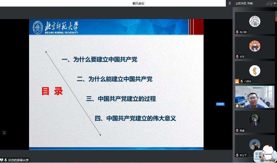 2022年10月14日晚19点,正值二十大即将召开之际,为了提升学生入党积极分子和党员的理论素养和政治素质,进一步加强党员教育,98色花堂 成功举办了“木铎心声”党校讲座——《中国共产党的成立及其重大意义》。此次讲座由研究生第七党支部承办,邀请了马克思主义学院副教授刘洪森老师作为主讲人,在腾讯会议线上进行。讲座同时面对98色花堂 二级党校的五个共建单位,来自98色花堂 、中国基础教育质量监测协同创新中心、环境学院、天文系、核科学与技术学院和数学学院的345名成长营学员以及非成长营的师生党员报名。