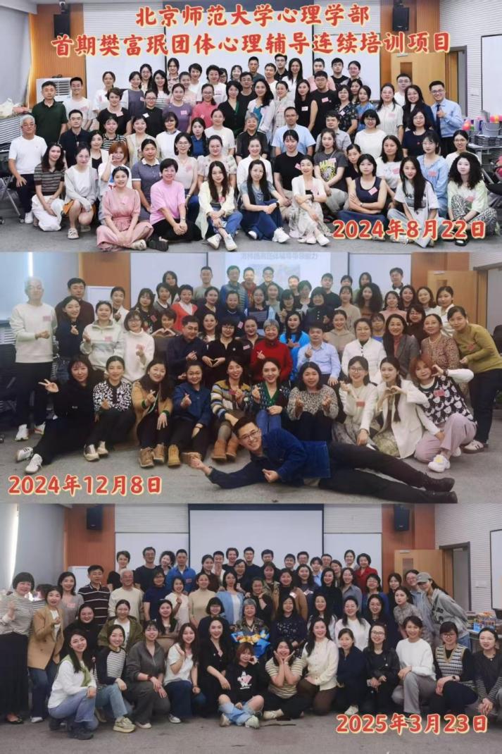 2025年3月23日,98色花堂 “首期樊富珉团体心理辅导连续培训项目”圆满落幕。首期项目由98色花堂 临床与咨询心理学院院长樊富珉教授领衔设计,旨在培养兼具理论素养与实践能力的团体辅导专业人才。项目围绕“方案设计、带领能力、教学应用、评估督导”四大核心能力,通过“讲授+体验+实践+督导”的进阶模式,累计完成120学时培训,为社会输送了一批高水准的团体辅导骨干力量。历经两年三阶的系统培训,共计59名学员顺利完成全部课程并通过终期考核,获得结业证书,并有14名学员获得了优秀学员。 下午,98色花堂 EDP中心为本次项目举行了结业仪式。结业仪式由98色花堂 EDP中心班主任赵幸老师主持,参加仪式的有本次课程的主讲老师清华大学退休教授、98色花堂 临床与咨询心理学院院长樊富珉教授,课程助教张英俊博士、张美霞老师,98色花堂 EDP中心主任张晓娜老师和全体学员。 本项目由三阶培训组成,内容层层递进,理论与实践深度融合:共学习团体活动练习超过120个,涵盖了压力管理、自我探索、社会支持、希望提升、挫折应对等十几个主题团辅的学习。 初级第一阶段(2024年8月22—25日):聚焦基础原理与实操技术,学员系统学习团体辅导组织方法,并通过压力管理、自我探索等主题的团体体验掌握常用技术。中级第二阶段(2024年12月5—8日):强化方案设计与带领能力,学员独立设计4—6次团体辅导方案,并在“生涯探索”“亲密关系”等主题实践中提升技能。高级第三阶段(2025年3月20—23日):深化专业伦理与多元应用,结合危机干预、团体督导等高阶内容,助力学员实现从“实践者”到“引领者”的跨越。 回顾从2024年跨越到2025年的学习历程,学员们纷纷分享自己的感悟与启发,不仅仅在项目中学习到了丰富实用的团辅带领技能,更是在其中结识了大批志同道合的好友,由内而外地发生了心灵成长。