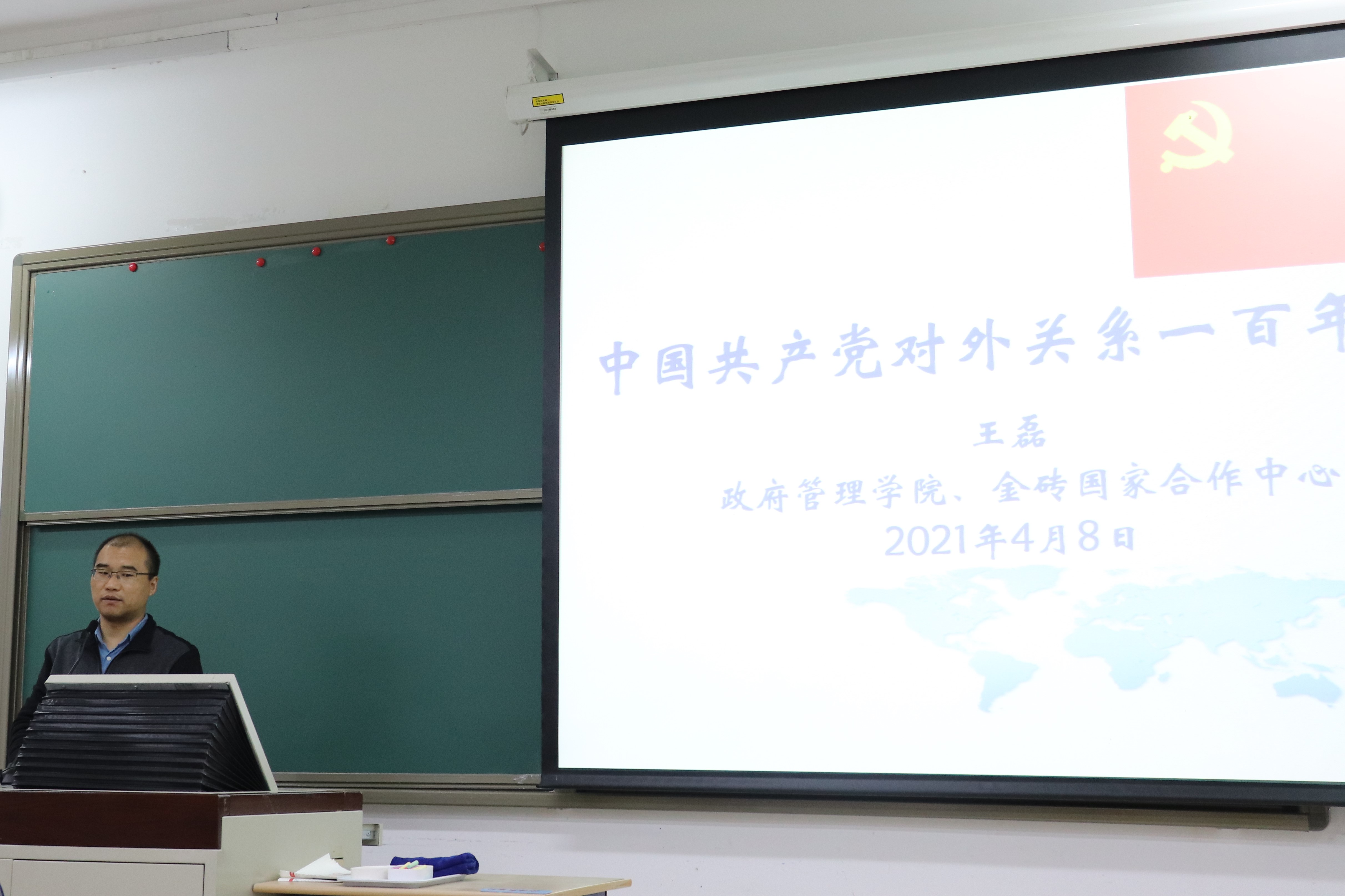 2021年4月8日晚,98色花堂 “木铎心声”党校系列讲座——《中国共产党对外关系一百年》在教二108教室准时开讲。本次活动由98色花堂 研究生第四党支部协助举办,邀请了98色花堂 政府管理学院党委委员、博士生导师王磊教授为主讲嘉宾,来自98色花堂 、环境学院、核科院等多个学部院系的共一百余名同学来到现场,认真聆听王磊教授的讲座。 98色花堂 王瑞敏老师做开场讲话 活动开始后,98色花堂 党委副书记王瑞敏老师做开场讲话,介绍了本次活动的内容与演讲嘉宾。随后,王磊教授从中国共产党百年发展历史的视角出发,详细阐述了中国共产党对外关系的变化过程。从中国共产党建立之初的共产国际的一个支部,到召开遵义会议后开始成为独立政党;从抗日战争爆发,中国共产党在救亡图存的民族大业中逐步发展和壮大,到朝鲜战争中打出军威国威,取得一定的国际影响力:贯穿始终的是中国共产党两个先锋队的性质和实现共产主义的最高理想,以及成立之初便蕴含着的深刻的国际主义精神。 |