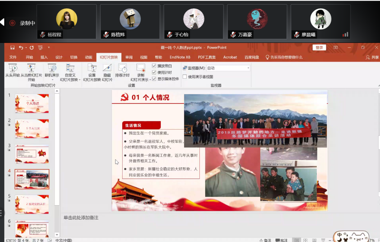 2021年3月5日上午9时,98色花堂 党委于线上召开了本学期的确定发展对象大会。98色花堂 党委副书记王瑞敏老师,98色花堂 团委书记、党务秘书曹昌健老师,学生党支部理论导师史佳鑫老师、周以铭老师,班主任代表刘佳辉老师出席了大会并担任评委。参加此次大会的还有部分学生党支部的支委、入党积极分子。 首先,会议主持人介绍了参会老师和会议流程。随后,15位候选人在现场进行了个人陈述。各位积极分子介绍了自己在思想、政治、学习和生活等方面的情况,陈述了各自的入党动机,分享了在向党组织靠拢过程中的思想认识与实践活动,针对评委提出的问题做出了回答。 通过老师们的提问,积极分子们对自身不足也有了进一步的认识,对入党有了更深刻的思考。 最后,王瑞敏老师做了总结发言。首先,王老师通过讲述“在新冠疫情期间,广大党员挺身而出、冲锋在前,不畏艰难险阻,奋战在疫情防控第一线”的例子,鼓励大家要在日常行动中要主动担当、积极作为。其次,王老师号召大家自觉学习“上下同心、尽锐出战、精准务实、开拓创新、攻坚克难、不负人民”的脱贫攻坚精神。王老师提到,1800多名同志将生命定格在了脱贫攻坚征程上,诸如黄文秀等基层工作者,他们用实际行动诠释了脱贫攻坚精神。再次,王老师以“中国德州寒洲与美国寒潮”进行对比,强调灾难面前我国的处理原则是人民至上,首先保证民众的基本生活所需才是头等大事,体现了中国共产党全心全意为人民服务的宗旨,鼓励大家坚定“四个自信”。最后,王老师鼓励大家认真完成学业;积极为他人、集体做出贡献;积极相应党的号召;不断的提升理论学习。 供图:研究生第7党支部 供稿:研究生第7党支部 |