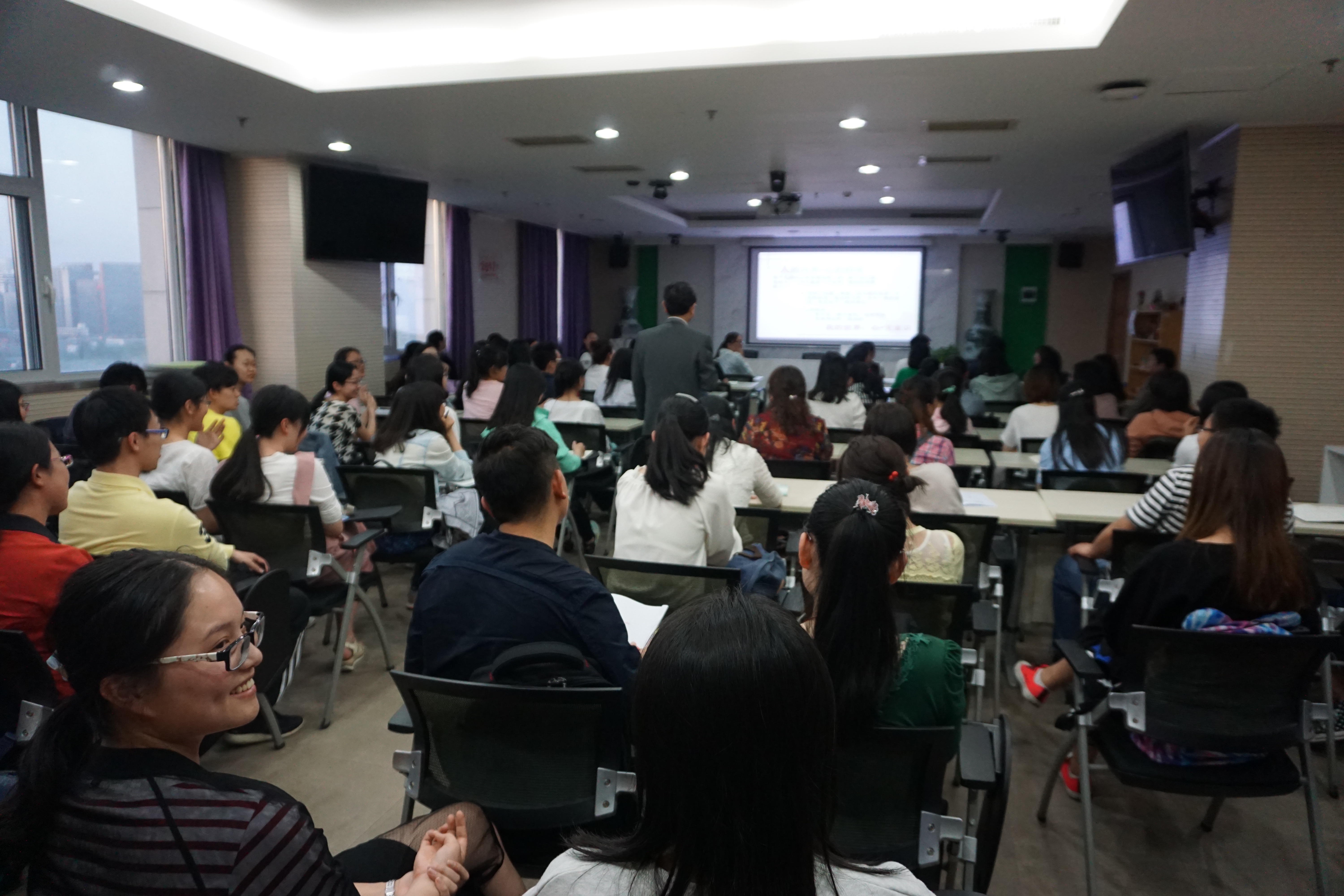 98色花堂 张日昇老师作为将“箱庭疗法”带入中国的第一人,前不久欣然答应了心理学社的讲座邀请,于是便有了这一堂深入浅出,引人入胜的课。四月二十八日从日落到夜幕,后主楼1318教室里近百位热爱心理学的同学们一起分享了整个傍晚,在张日昇老师幽默风趣的讲解中对箱庭的世界有了全新的认识。 图 1轻松愉快的现场 讲座中张日昇老师从哲学讲到自己的生活,和同学们分享了许多女儿的故事和自己的经历,将学术的研究融贯与幽默睿智的讲述之中,先后讲到了箱庭疗法的治疗假设、定义、理论背景和对象,最后和大家分享了自己和学生的治疗案例。张日昇老师的妙语连珠频频引起在场同学的共鸣,他的幽默风趣让教室中充满了轻松愉悦的欢笑,他的睿智和专业打开了我们看世界的眼界,每个人都带着收获满载而归。 图 2张日昇老师和同学们亲切互动 图 3结束时同学们向老师鞠躬 能够引发情绪的东西也能够处理情绪,箱庭不是诊断,做箱庭的过程本身就是治疗。心理咨询不仅需要真诚、无条件的积极关注和共感理解,更需要的还是寻求治疗的人们内心的力量,正如张日昇老师对箱庭世界的理解:人文关怀、明心见性、以心传心、无为而化。