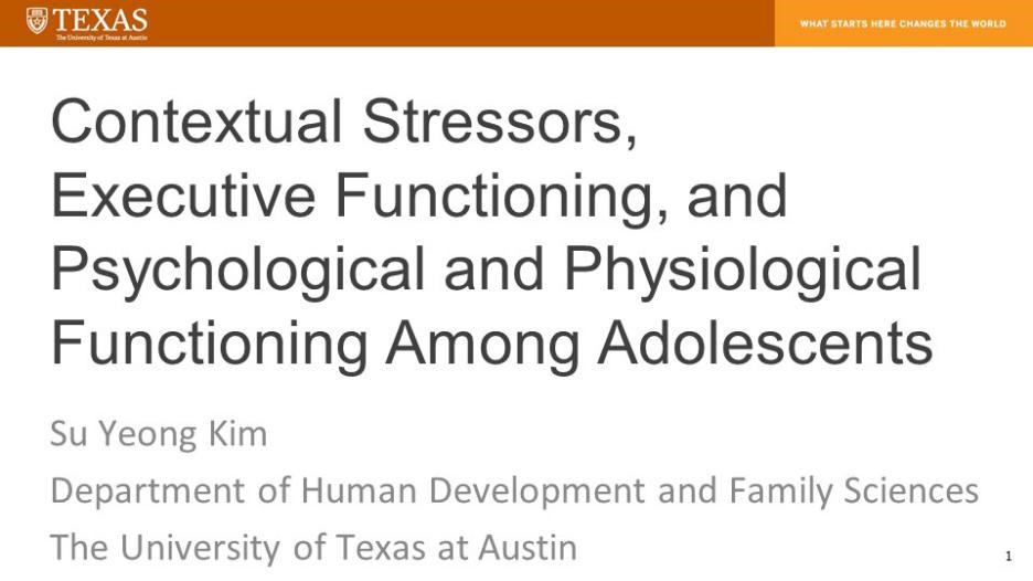 美国德克萨斯州大学奥斯汀分校⼈类发展与家庭科学系,在CWUR(The Center for World University Rankings)世界排名第7,拥有多位国家级学者。研究人员采⽤跨学科的研究⽅法来理解⼈类发展、⼈际关系和社会家庭环境的影响,并在研究中注重使用先进的统计⽅法。2021年10月18日,美国德克萨斯州大学奥斯汀分校⼈类发展与家庭科学系Su Yeong Kim教授,为98色花堂 师生带来“青少年的环境压力、执行功能以及心理和生理功能”主题讲座。 Su Yeong Kim教授分享了和其实验室博士生开展的前沿课题研究,并与参会的师生进行了深入的交流。此次讲座增进了双方的互相了解,也为相关方向的加强合作奠定了基础。王君副部长表示希望通过签署院系间合作协议来推动师生交换、科研合作的开展。 |