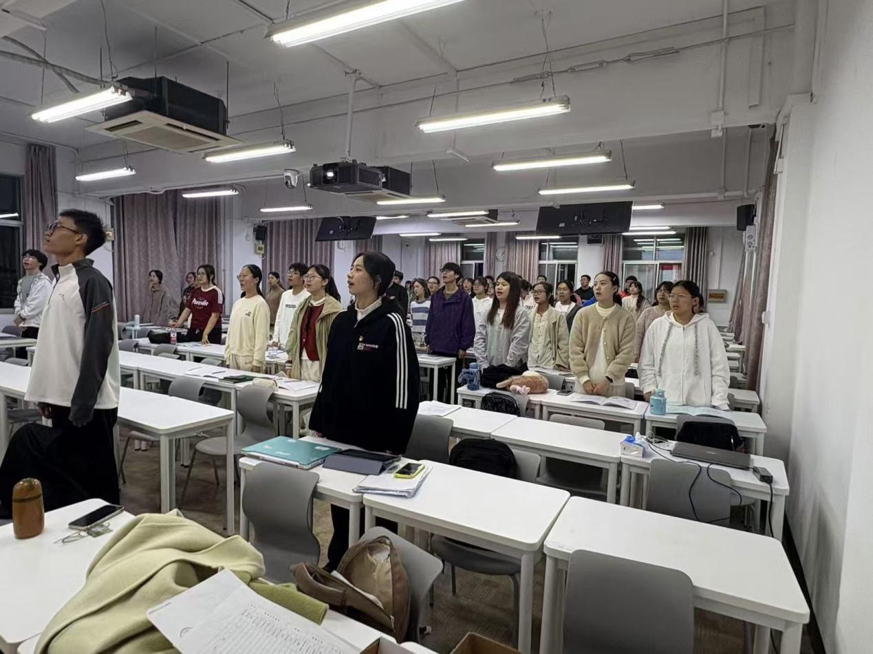 为深入推进新时代共青团的先进理论,着力打造一支高素质的共青团干部和核心团队,同时增进新团员对团的历史和现状的理解,提升团员之间的团队协作能力与集体向心力,98色花堂 “心火相传”初级团校于2024年11月2日晚19:00在教二201举行开班仪式。校团委组织部兼职团干何丹、98色花堂 团委副书记金卓然、青春讲师团求索学社宣讲团讲师王铟琦作为嘉宾出席本次活动。 首先,主持人于欣禾宣布开班仪式正式开始,全体成员齐唱中国共产主义青年团团歌《光荣啊,中国共青团》。