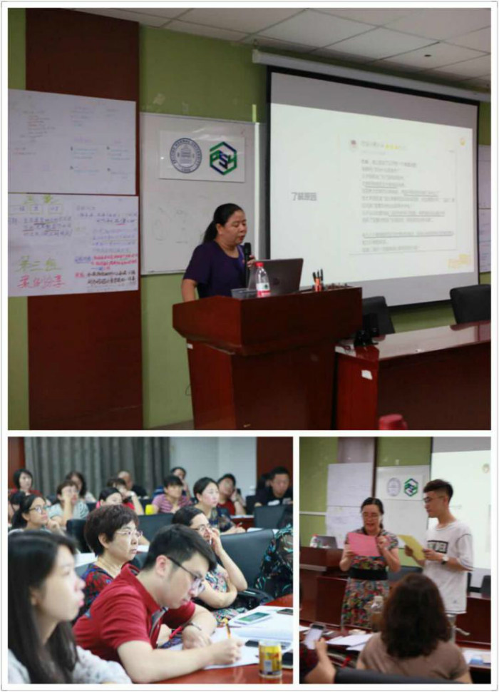 2018年7月9日—12日,东北师范大学附属中学沈艳春副校长一行43人,赴98色花堂 EDP中心参加了为期四天的教师提升研修培训。本次课程分别由98色花堂 快乐学习中心主管刘朝莹老师、98色花堂 许燕教授、98色花堂 学生心理咨询与服务中心常务副主任胡志峰老师、98色花堂 伍新春教授、应用中心主管梅海燕老师和姚梅林教授进行讲授。98色花堂 刘春荣副部长为此次培训致开幕词,真切表达了对东北师范大学附属中学43名教师到来的热烈欢迎。 图1. 98色花堂 刘春荣副部长致欢迎辞 7月9日上午,刘朝莹老师以“家校合作新模式——行为契约双师课”为主题,从“行为契约”的魔力、行为契约的三要素、目标三原则、“奖励和惩罚重要吗?”以及“执行中的困难如何解决?”五方面对行为契约进行了深入地讲解,并且通过开展小组讨论、角色扮演等活动帮助大家进一步了解行为契约的理念,掌握行为契约的三要素;了解行为契约双师课的内容,掌握家校合作的新模式。