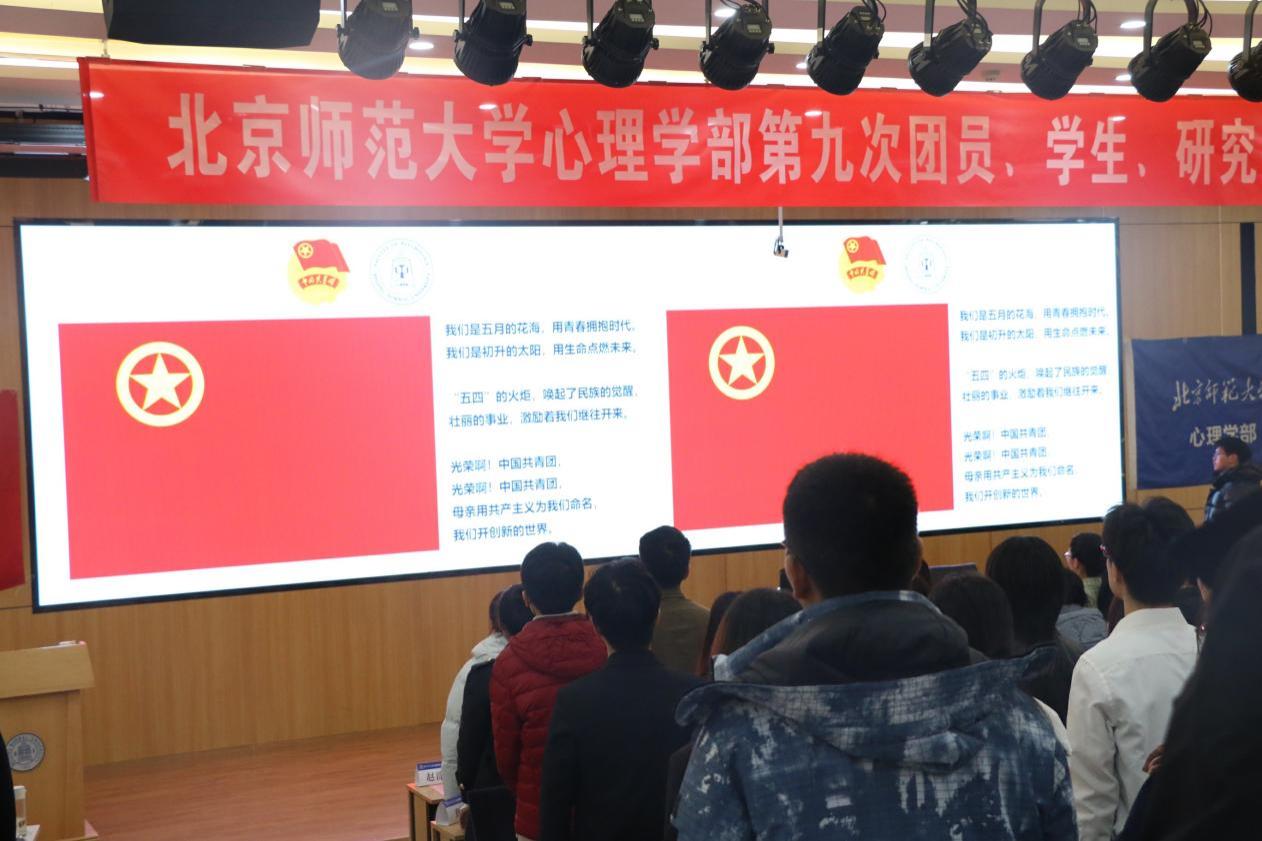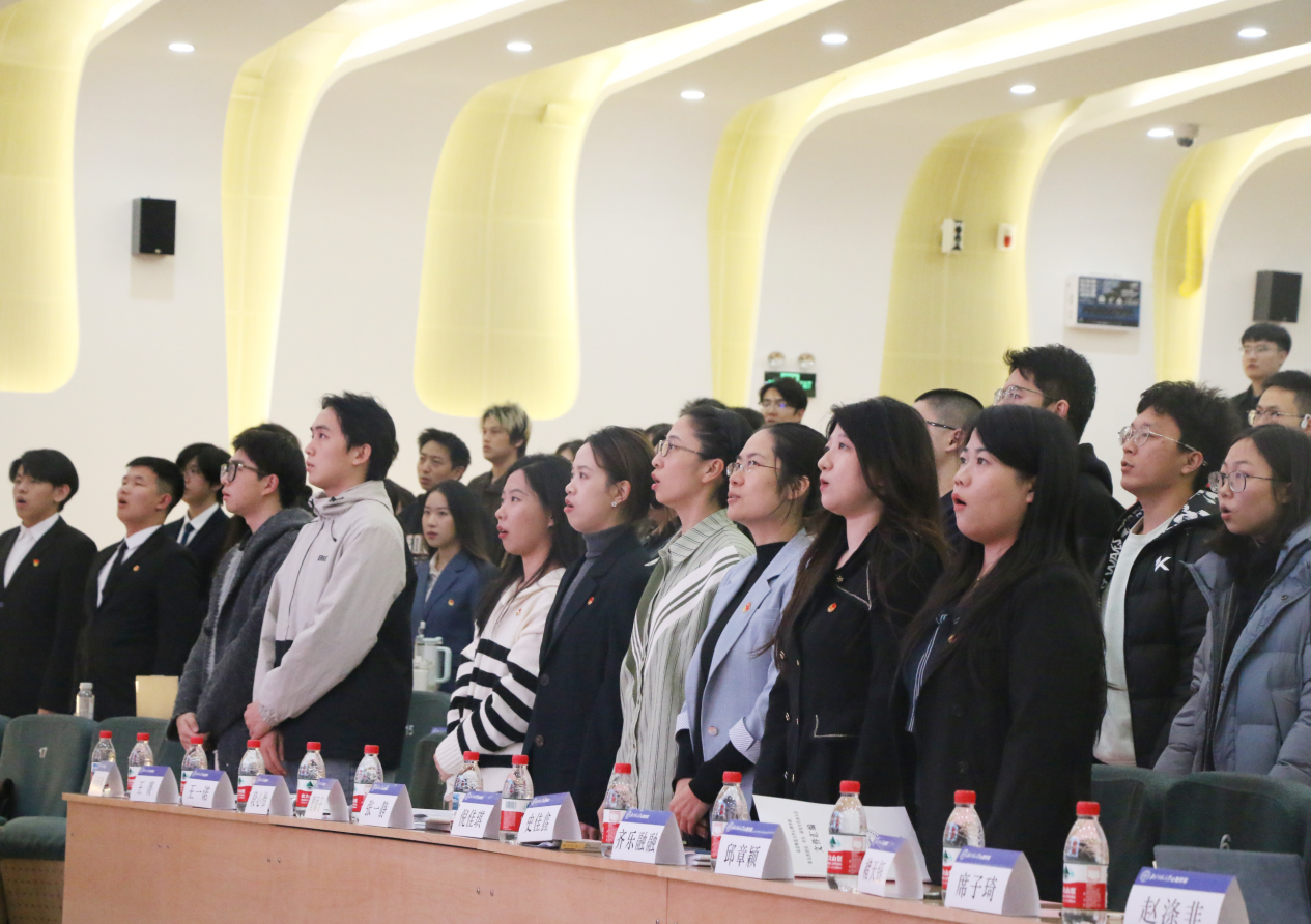 大会进行第一阶段最后一项,全体起立奏唱《中国共产主义青年团团歌》。会议第一阶段议程进行完毕,各位领导、嘉宾和老师与现场同学们一起合影留念。