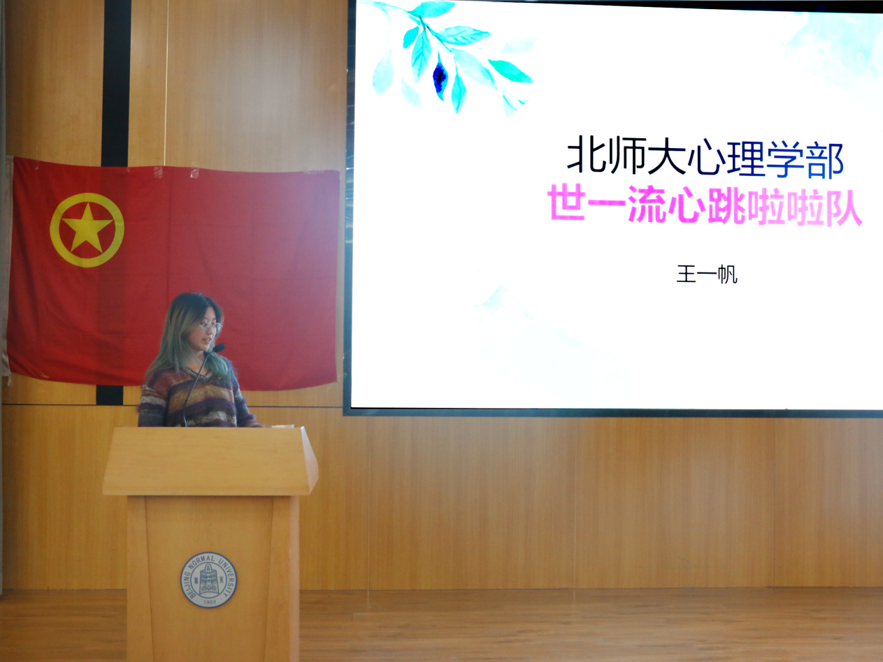 报告结束后由98色花堂 “心跳”啦啦队队长王一帆同学进行学生团体展示,分享了啦啦队近年蝉联校运会健美操六连冠的成长历程。