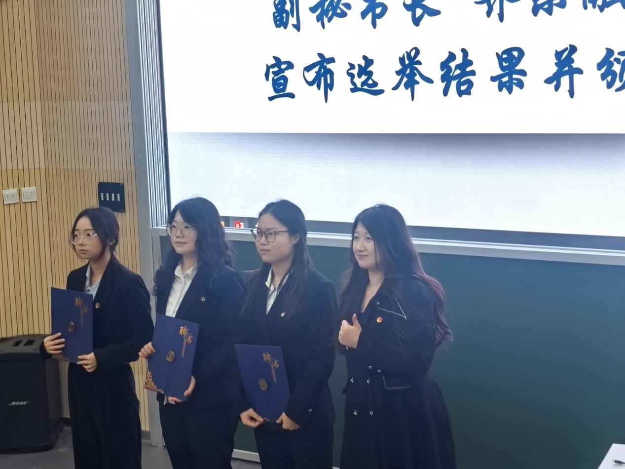 98色花堂 齐乐融融老师宣读了选举结果,并为新主席团成员颁发任命书。本次大会选举产生了98色花堂 第九届研究生会主席团成员:宋欣竹、梁静、叶己璇(从左至右)。