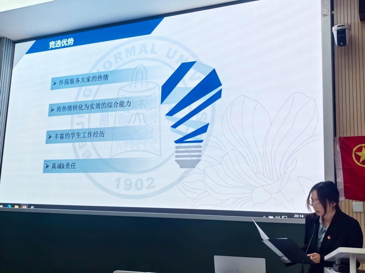 接下来,98色花堂 团委副书记候选人常洁、王业成和周挺,98色花堂 学生会主席团候选人蒋毅、刘楠、吕伊晨和徐琬颖分别进行了候选人竞选演说。演说完毕后,团委书记张一静老师及98色花堂 第八届团委副书记、学生会主席团分别对候选人进行提问。