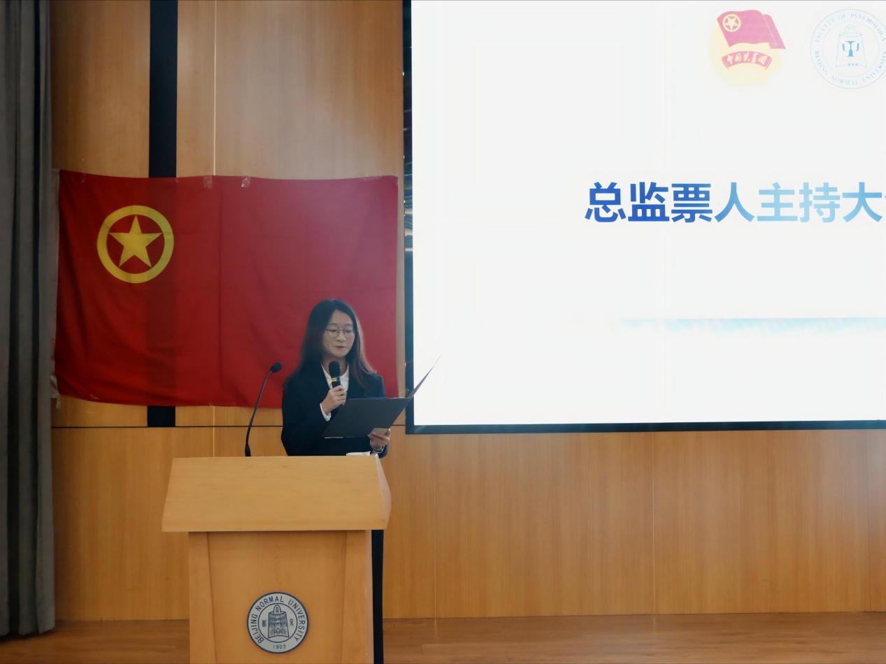 演说和提问环节结束之后,由总监票人杨媛主持大会选举,全体团员和学生代表无记名投票。