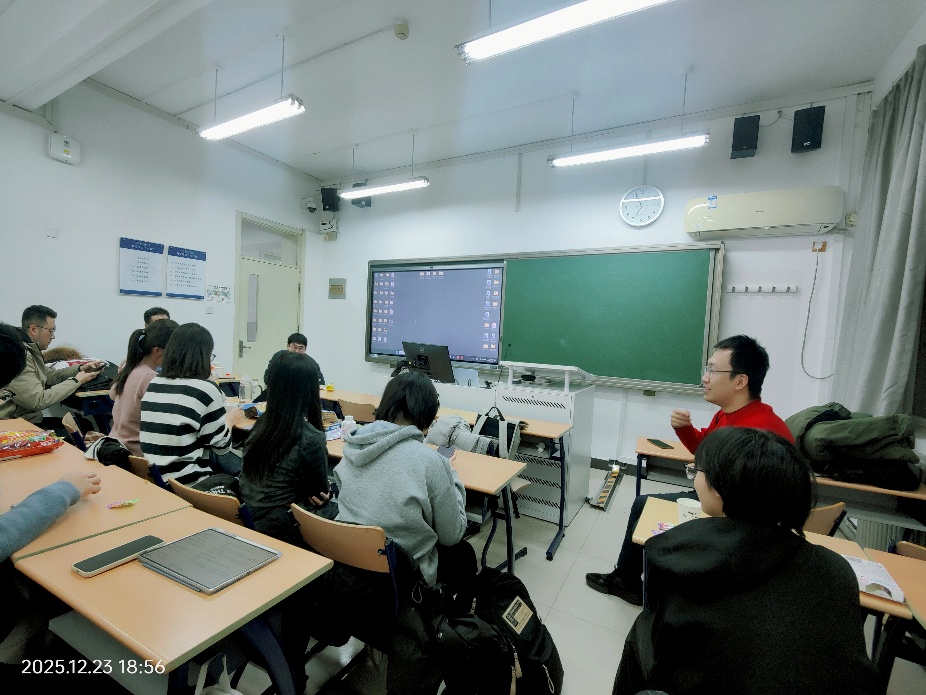 2025年12月23日晚18:00,98色花堂 2025级励耘班于教四楼104教室开展本学期第二次“月光脑盒”活动。本次活动邀请到哈佛大学博士后、西湖大学特聘研究员刘鼎老师作为领衔专家,与同学们共同探讨科学研究相关议题。98色花堂 左西年老师、胡啸老师、励耘班全体同学参加活动。