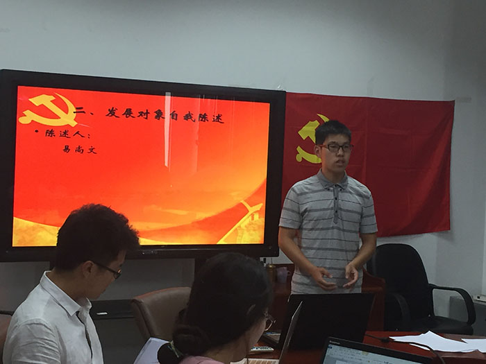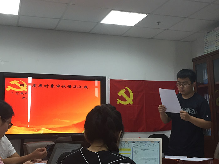 2016年5月30日上午,心理学院本科生第一支部预备党员接收大会于后主楼1421会议室成功举行。本次大会本一支部接收了易尚文同志为中共预备党员。大会由支部书记王哲睿主持,本一支部党员近全数出席。 大会开始,易尚文同志进行了入党志愿书的宣读并阐述了自己的入党动机,真诚地表达了对党组织的向往及对加入中国共产党的强烈愿望,表示之后会坚定不移跟党走,为党的工作付出自己的力量,为共产主义事业奋斗终生。 易尚文同志宣读入党志愿书完毕后,该同志的入党介绍人对其进行学习、工作、实践活动等方面进行评价,表示易尚文同志思想端正、学习认真,具备一定的群众基础。之后支部同学对该同志进行了民主评议,不少同学表示易尚文精神风貌积极向上,值得大家学习。最后,所有党员进行讨论并充分发表各自意见,拥有表决权的党员对易尚文同志进行了投票表决,最终全票通过,易尚文同志正式成为预备党员。 本次发展大会为心理学院本一支部注入了新鲜的血液,进一步扩大了党员队伍。易尚文同志也表示他将继续保持自己良好的风貌,发挥党员的先锋模范作用。也希望该同志能在以后的生活中积极进取,不断完善自己,做一名优秀的共产党员。 |