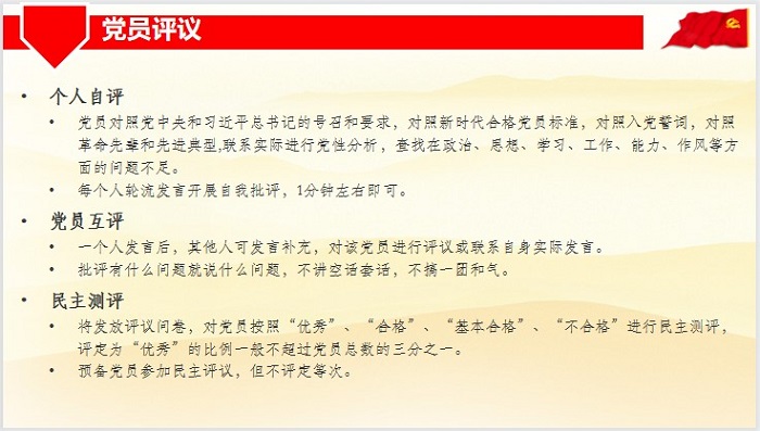 2022年2月16日晚6点,98色花堂 本科生第二党支部通过“腾讯会议”在线上顺利召开了民主评议党员暨组织生活会。本次会议由支部书记谭静文主持,共21名党员及预备党员同志参与。会议先后进行了理论学习、党员评议和支部评议三项内容。 首先是理论学习。支书在会前一周已将《党章》、《在庆祝中国共产党成立100周年大会上的讲话》、《中共中央关于党的百年奋斗重大成就和历史经验的决议》等学习材料发放给全体同志,要求所有人认真自学材料,并将在开会时以问卷的形式测试大家的学习效果。在会议开始前,全体参会同志填写签到问卷和学习材料测试问卷,以测试自己的学习效果以及巩固材料中的核心内容。 之后是党员评议,分为个人自评、党员互评和民主测评三个程序。每位党员及预备党员同志轮流进行1分钟左右的发言,对照合格党员标准、入党誓词以及身边先进典型,联系实际进行党性分析,查找在政治、思想、学习、工作、能力、作风等方面的问题和不足,有事请假的同志由支书在会上宣读该同志提前写好的个人自评内容。每位同志发言后,其他同志可进行评价补充。待所有同志发言完毕后,支书发放民主测评问卷,要求在场同志按照“优秀”、“合格”、“基本合格”和“不合格”对支部内的所有正式党员进行评价。