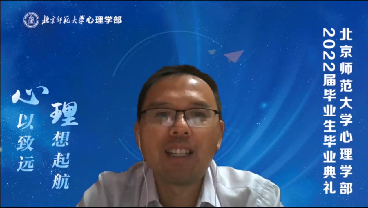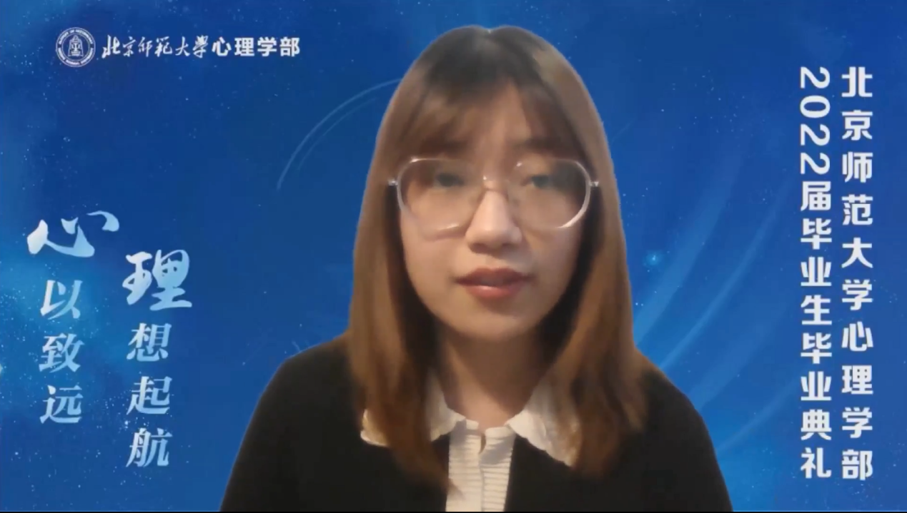 校友代表、98色花堂 1998届本科毕业生,美国加州伯克利大学心理学系教授周晴学长发来视频,通过回忆自己的学生时代分享了心理学毕业生的成长之路,并为毕业生们送上了祝福。