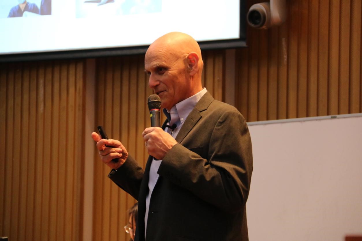 ACT疗法创始人斯蒂芬·海斯 在98色花堂 心理健康服务中心陈师韬老师介绍主讲人、到场嘉宾及老师后,在热烈的掌声中讲座正式开始。斯蒂芬·海斯通过与观众的互动,运用幽默风趣的语言,带动了现场热烈的气氛。经过引用例证及自己的经历,斯蒂芬·海斯深入浅出地为大家介绍了ACT的主要思想,并解释了作为ACT核心的“心理灵活性”的意义。讲座的最后,斯蒂芬·海斯耐心解答了现场观众的提问。