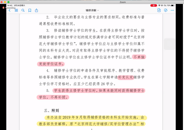 2020年3月28日下午2点,以辅修经验分享为主题的学业辅导室线上朋辈辅导如期举行。2016级的张卓然、赵逸雪和2017级的朱宁玉三位同学结合自身在辅修中的经历,详尽阐明了辅修的注意事项,并为同学们如何抉择是否应该辅修给出了建议,令参与讲座的同学受益匪浅。 首先是赵逸雪同学发言。她为同学们详细讲解了辅修的益处。其一,学习新的学科能够拓宽主修专业的知识面,提升个人创造力;其二,辅修可以帮助同学们获得新的技能(Python,专业英语,统计分析等);其三,辅修可以为研究生阶段专业方向的选择和职业发展提供更多可能性。同时,她也为同学们讲解了辅修在学分上的要求,并提供了一些实用的选课技巧。 随后是张卓然同学补充了自己在辅修统计学过程中收获的经验,提到了在辅修过程中时间和精力分配的取舍,结合自己的体验和大家分享了更多在辅修中得到的收获。 最后,朱宁玉同学讲解了自己在辅修新闻传播学时的个人体验,结合学校政策讲解了学分认证等相关内容。 当主持人宣布活动结束,同学们纷纷在聊天面板向师姐们致谢,本次辅修经验分享朋辈辅导圆满结束。 供稿|柳笛 供图|柳笛 |