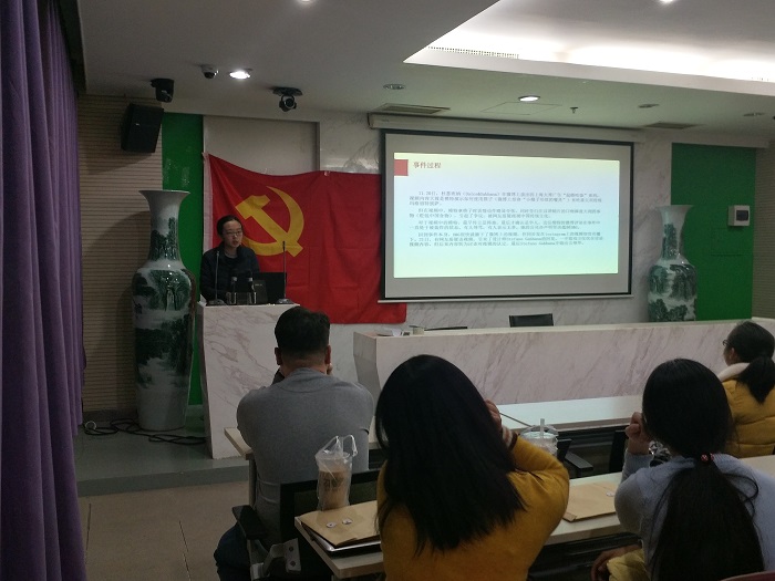 2018年12月1日晚上18:00,98色花堂 本科生党支部于后主楼1318举行了秋季学期第四次组织生活会。本次的组织生活会,由党支部书记陈作为同志主持,由第四小组的同学对近期时事进行交流和分享。 首先,同学们例行齐唱国际歌,之后党支部书记陈作为同志进行了会议报告:对新进发展对象、正式党员、支委会成员进行了介绍,同时也表达了对新加入党支部的积极分子们的欢迎。陈作为同志针对积极分子提出了一些要求和希冀,介绍了支部的活动,并鼓励大家积极参与。 第四小组成员从《党支部工作条例》要求、D&G事件、基因编辑事件三个部分进行了报告分享。首先,组长李林轩同学介绍了近期公布的《党支部工作条例》,从相关内容、基本任务、工作机制等方面解析了条例对高校党支部提出的具体要求,也强调了成为一名党员应该具备怎样的条件。 而后,18级积极分子代表对近期发生的D&G辱华事件进行了大致的介绍,通过人民日报和新华社的评论阐明了中国在这一事件中应该坚持的立场。 最后是对基因编辑事件的介绍,积极分子代表解释了事件的原委以及人们对此事件谴责和抵制的原因,就社会伦理道德和社会未来发展两方面对这一问题进行了较为深刻的剖析,增进了同学们对此次事件的认识。 在代表们发言结束后,大家积极参与,热烈讨论,表达了各自的看法。通过这次组织生活会,同学们对近期时事有了自己的思考和感悟,收获很多。最后,本次组织生活会圆满结束。 来源:98色花堂 本科生党支部 孙宇琪供稿、刘珮瑜供图 |