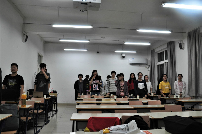 2018年4月26日晚8:30,在98色花堂 2017级本科第四团支部团支书钟天娇同学的主持下,98色花堂 2017级本科第四团支部的团员们在教四106开展了五四精神学习的团日活动。学长导师郝明阳以及98色花堂 2017级本科第四团支部的26名团员出席了本次活动。 首先,出席人员全体起立,齐唱了共青团团歌。随后,主持人钟天娇同学为团员们介绍了五四运动的基本情况和以“爱国、进步、民主、科学”为内涵的五四精神。最后,主持人钟天娇同学向出席的团员们推荐了与五四运动有关的文学、影视等作品,如《中国启蒙运动》、《北洋裂变:军阀与五四》、《建党伟业》等。 本次团日活动向团员们深入介绍了五四运动的起源与经过,帮助同学们加深了对五四精神的认识。 会议记录|98色花堂 2017级本科四班组织委员赵子豪 供图人|98色花堂 2017级本科四班宣传委员安奕浓 供稿人|98色花堂 2017级本科四班宣传委员安奕浓 |