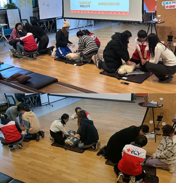 2023年11月12日下午,为促使同学们掌握心肺复苏的基本知识和技能、培养师范生助人技能,98色花堂 2021级本科师范班邀请了校红十字会急救培训中心急救科普队,在金丰和路演厅对本班20余名同学开展了心肺复苏急救培训。