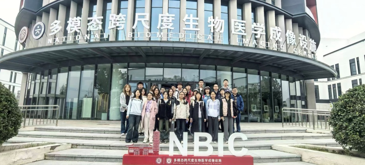 2025年10月12日,全班同学来到了位于北京怀柔的北京大学国家生物医学成像科学中心,沉浸式参观“国之重器”,解锁脑科学冷知识。 我们此行主要参观的是多模态跨尺度生物医学成像设施,设施由四大核心装置和一个辅助平台构成,包括多模态医学成像装置、多模态活体细胞成像装置、多模态高分辨分子成像装置、全尺度图像整合系统以及模式动物等辅助平台和配套设施。 首先,我们来到全尺度整合中心。在这里的成果展示区,我们看到了科学与哲学的融合、对人类重要命题的探索、以及许多科研成果的应用和市场化。