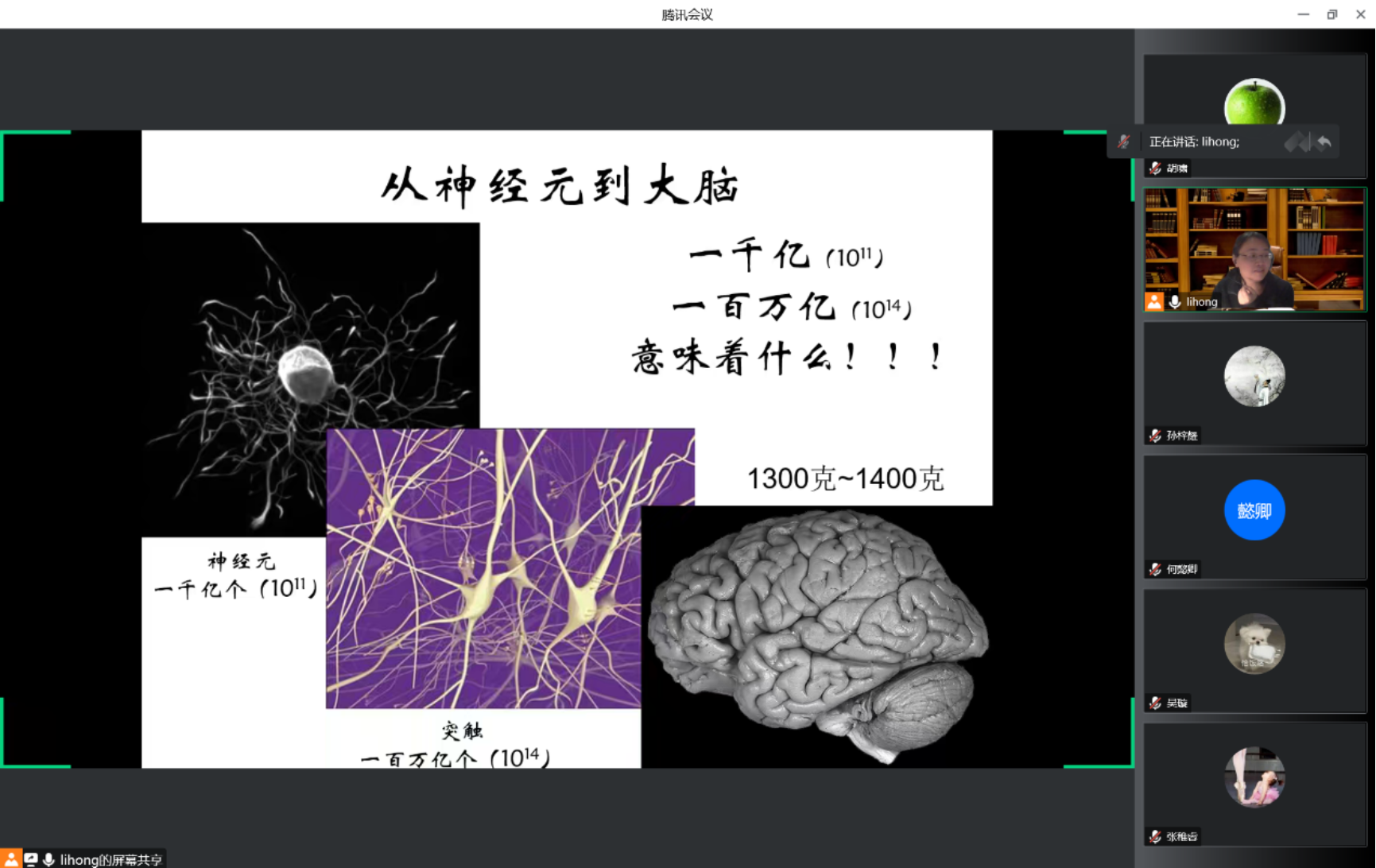 在讲座中,李虹教授首先介绍了人类大脑神经元的形态和数量,并用摞硬币的呈现方式让同学们直观感受了大脑中神经元数量的庞大。随后,李虹教授介绍了大脑的各个部分的结构与功能。和其他动物相比,人类的大脑得到了更进一步的发展,其中包含从下往上、从后往前和从右往左的进化。讲座的最后一部分内容是关于大脑是如何发育和修复自身。
